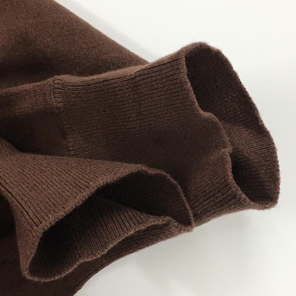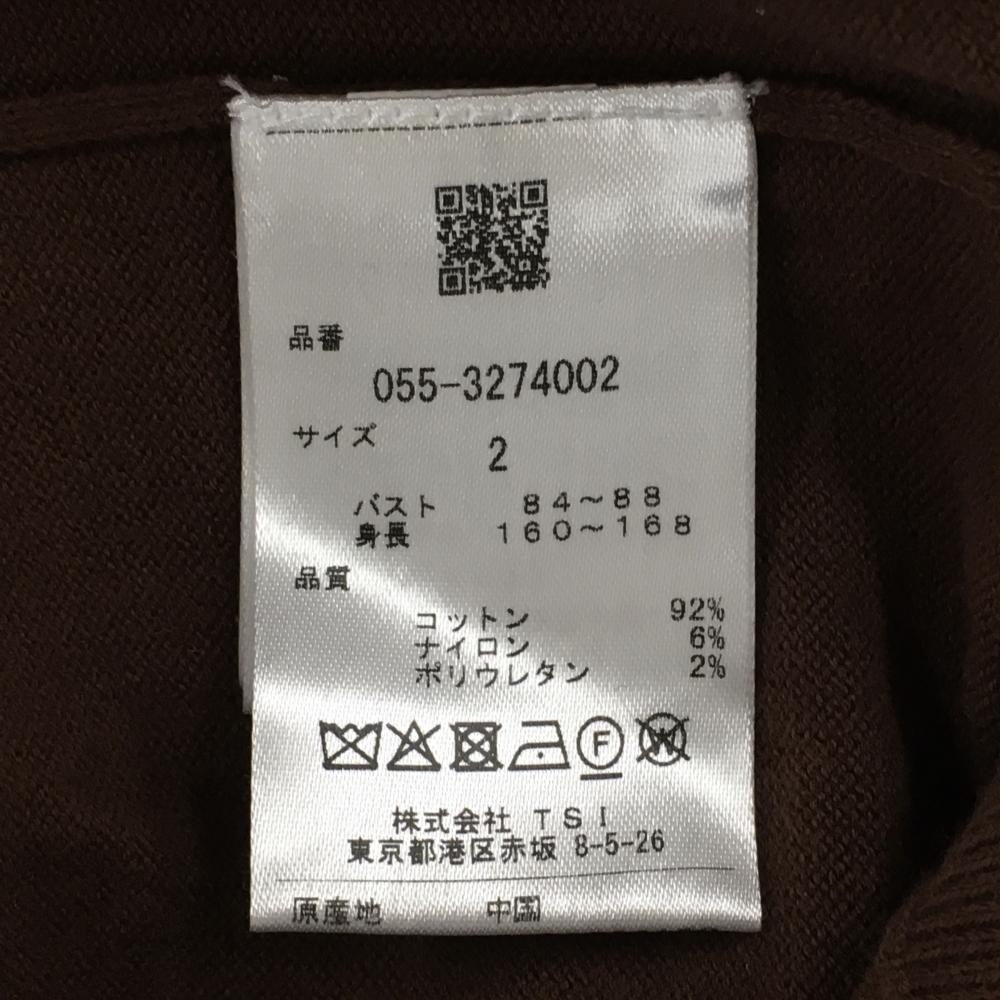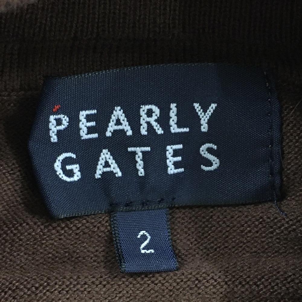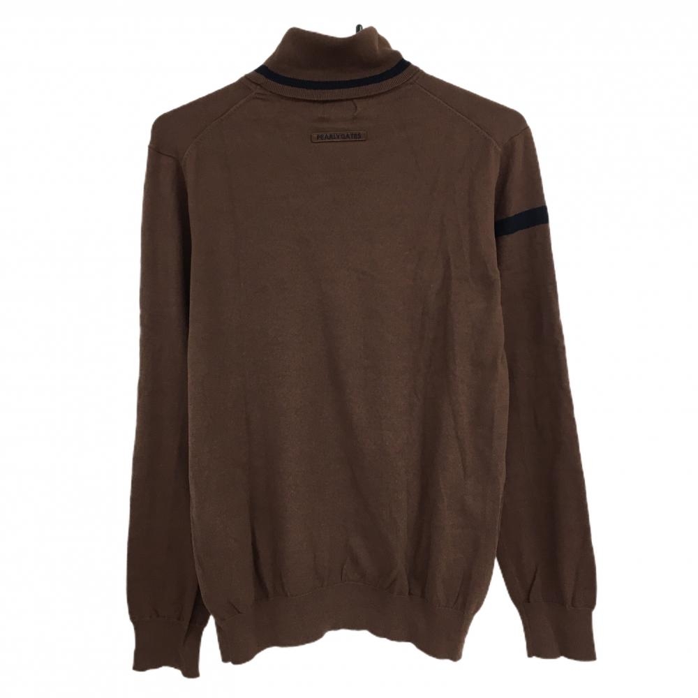 【美品】パーリーゲイツ タートルネックセーター ブラウン×白 胸元ロゴ ニット レディース 2(L) ゴルフウェア 2023年モデル PEARLY GATES