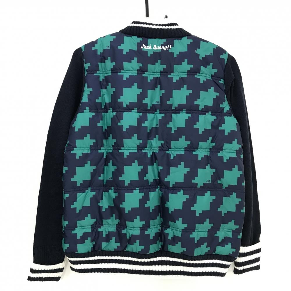 【超美品】ジャックバニー 中綿切替ジャケット ネイビー×グリーン 身頃総柄 身頃中綿 レディース 2(L) ゴルフウェア Jack Bunny