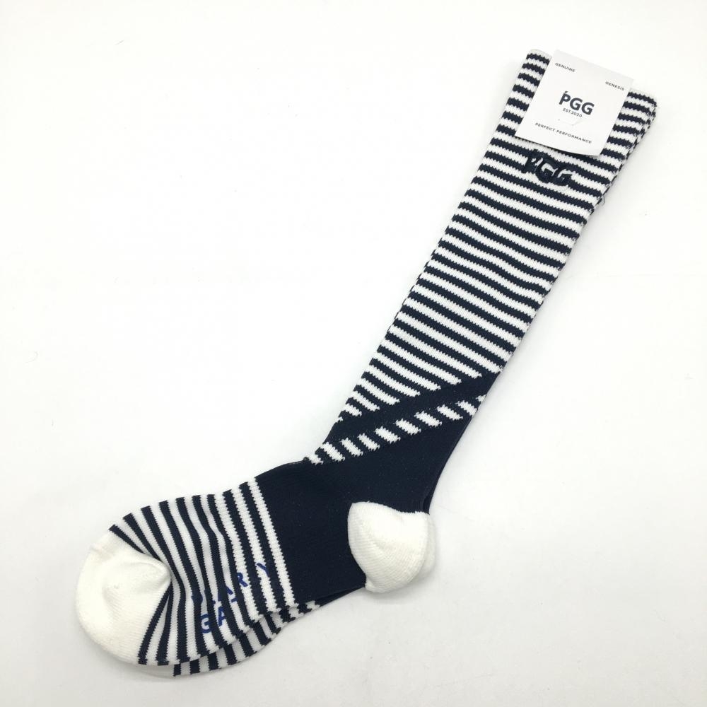 【新品】PGGパーリーゲイツ ハイソックス 白×ネイビー ボーダー レディース ゴルフウェア PEARLY GATES