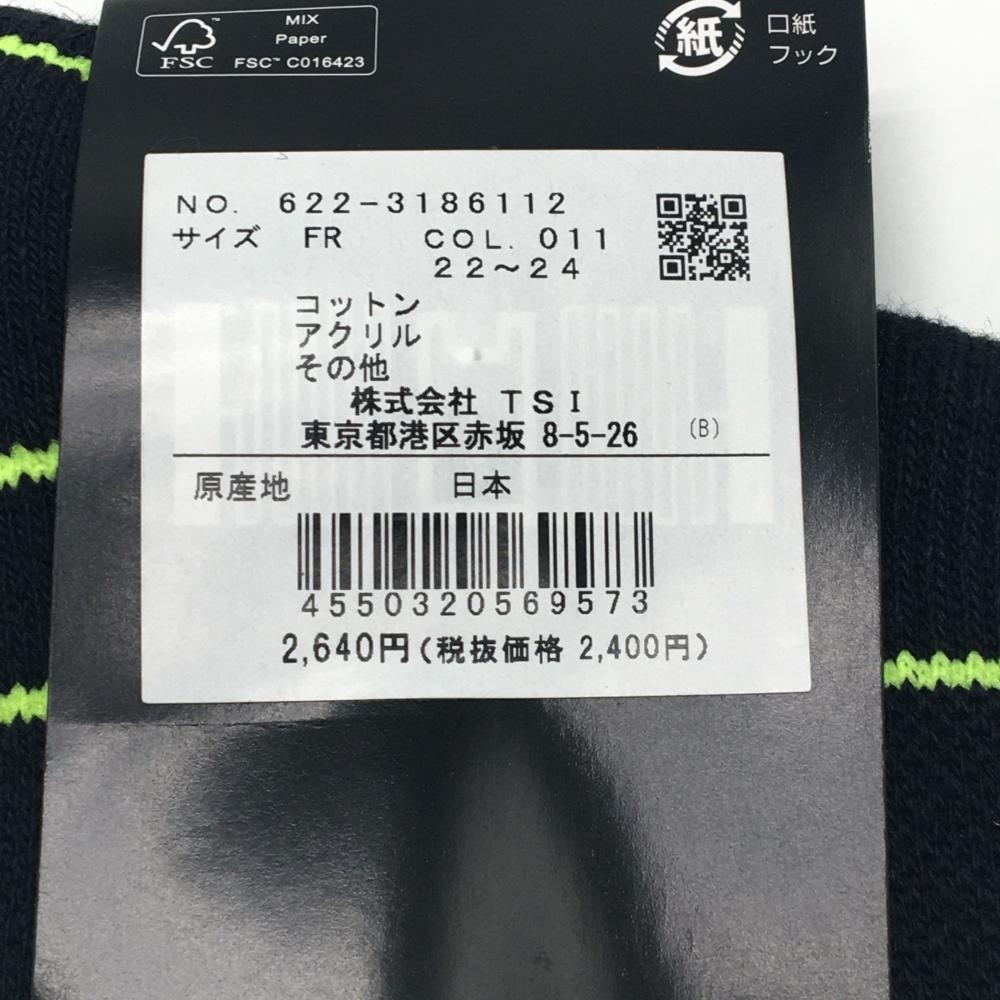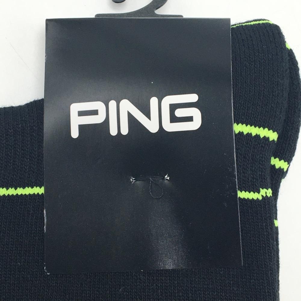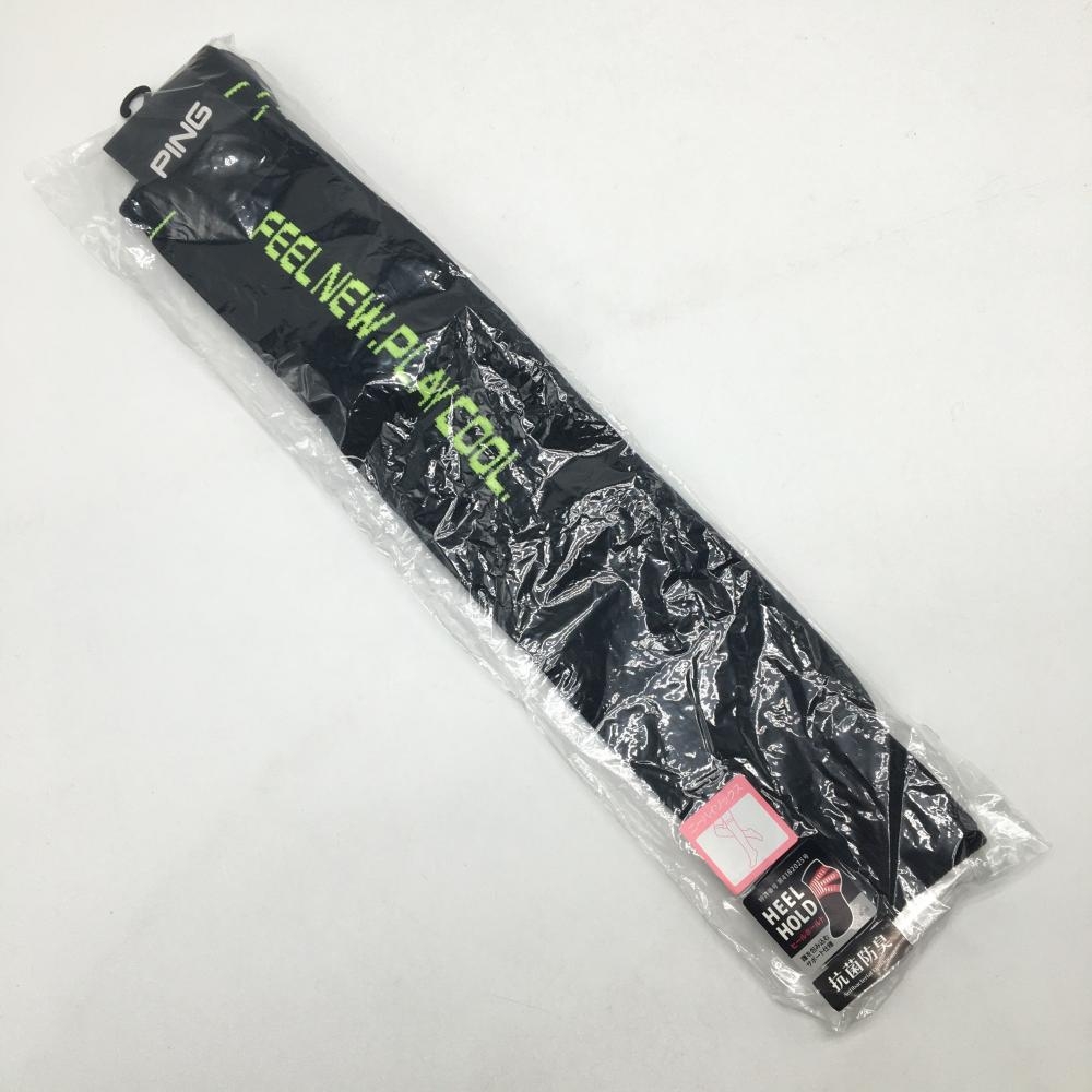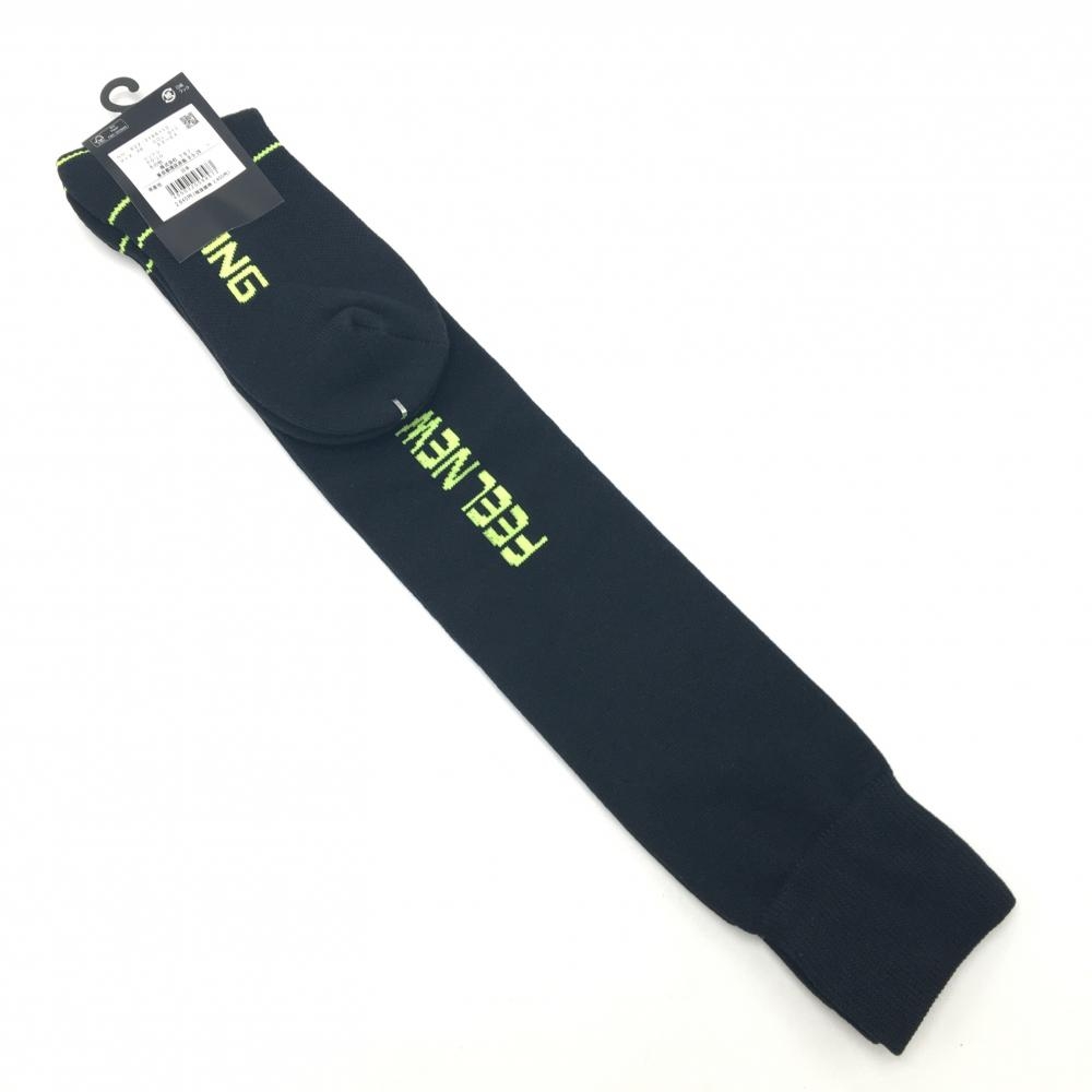 【新品】ピン ニーハイソックス 黒×イエローグリーン ロゴ 抗菌防臭 ヒールホールド レディース FR 22-24 ゴルフウェア PING