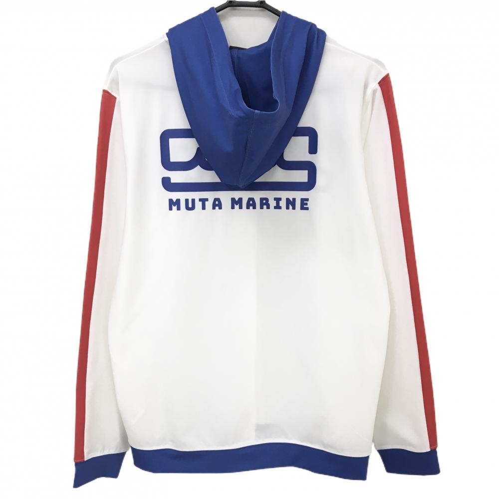 【超美品】ムータマリン ジップパーカー 白×ブルー×レッド バックロゴ メンズ 6(L) ゴルフウェア muta