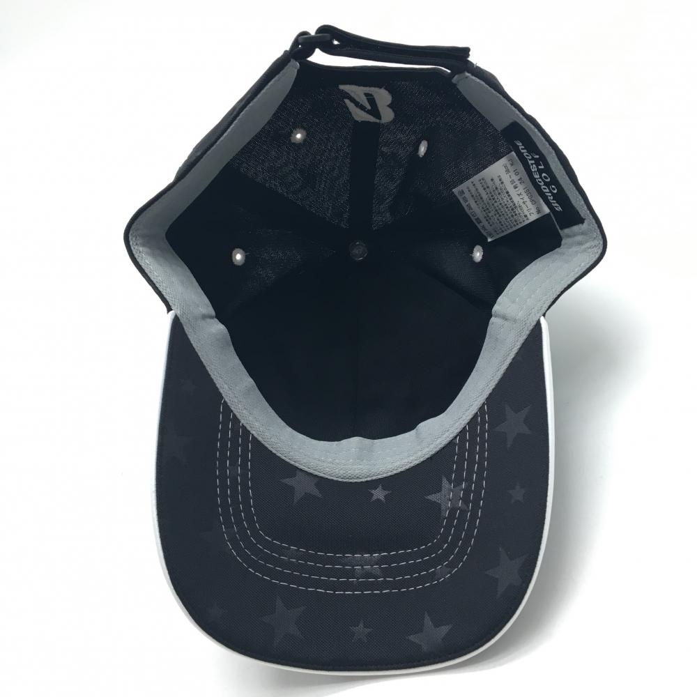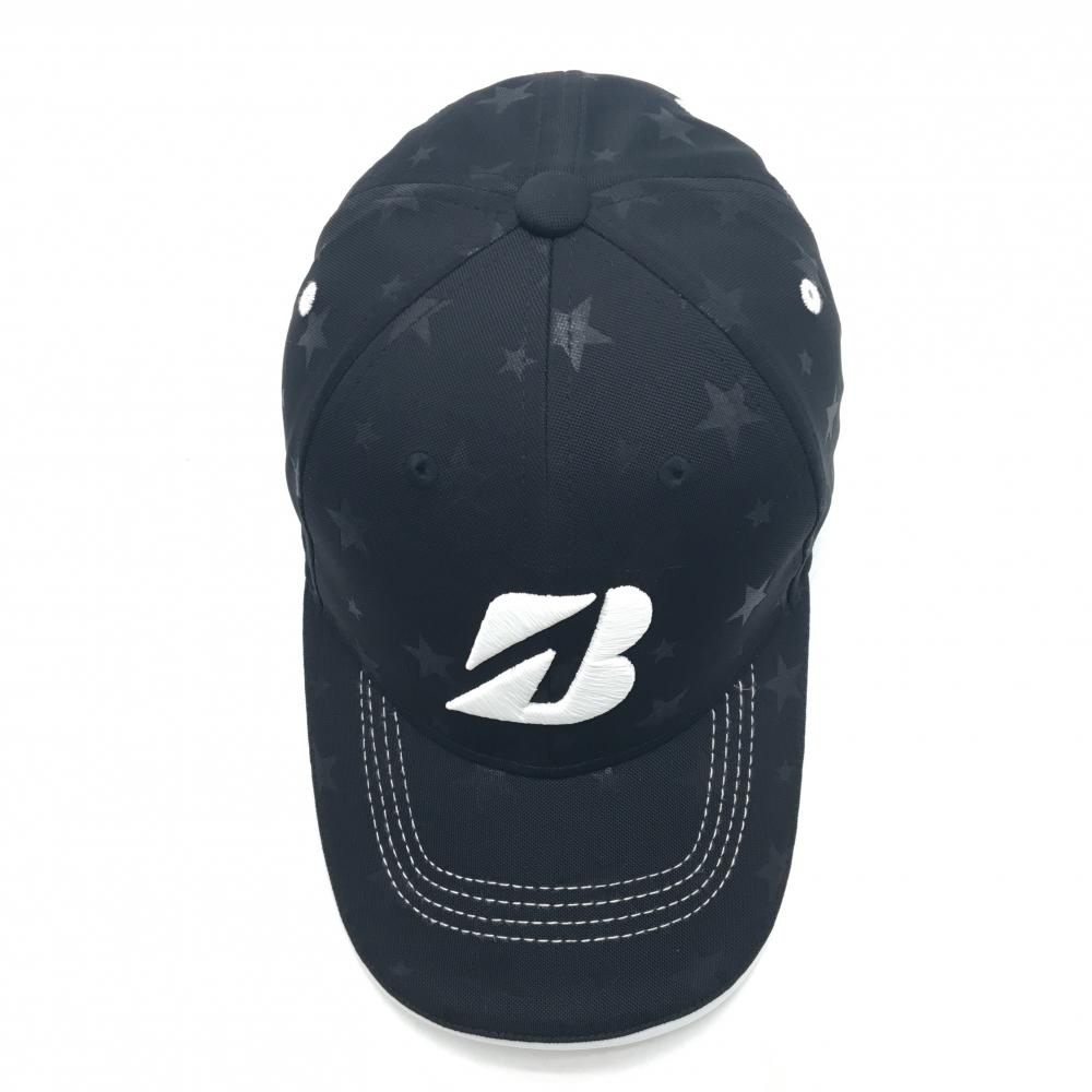 【超美品】ブリヂストンゴルフ キャップ 黒×白 星地模様 ロゴ刺しゅう フリーサイズ(約55-58cm) ゴルフウェア Bridgestone