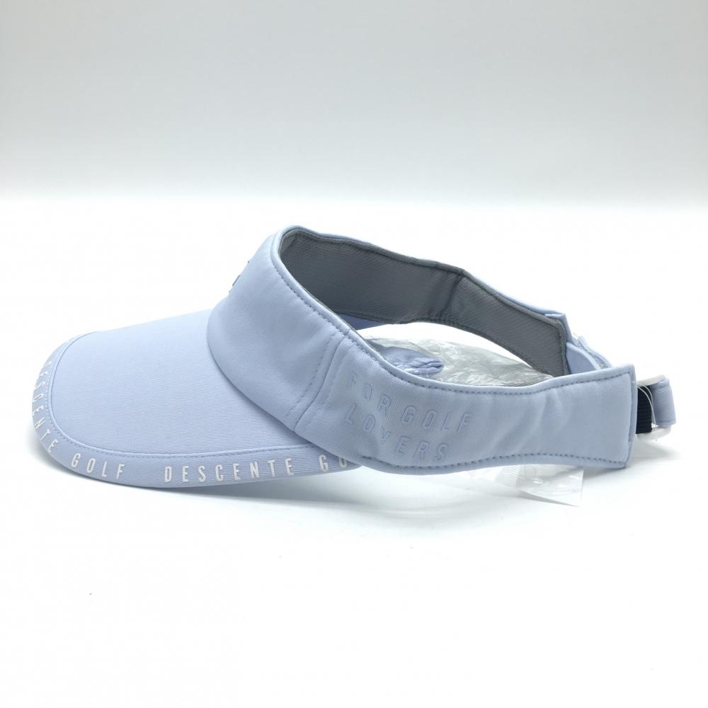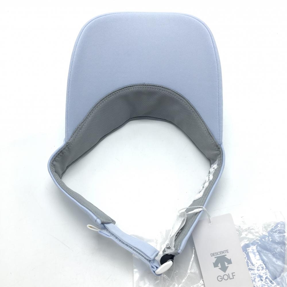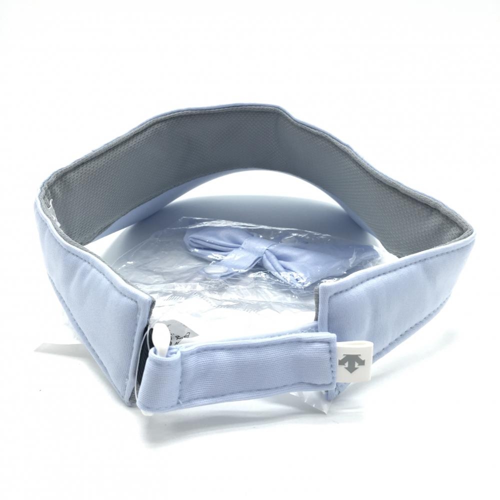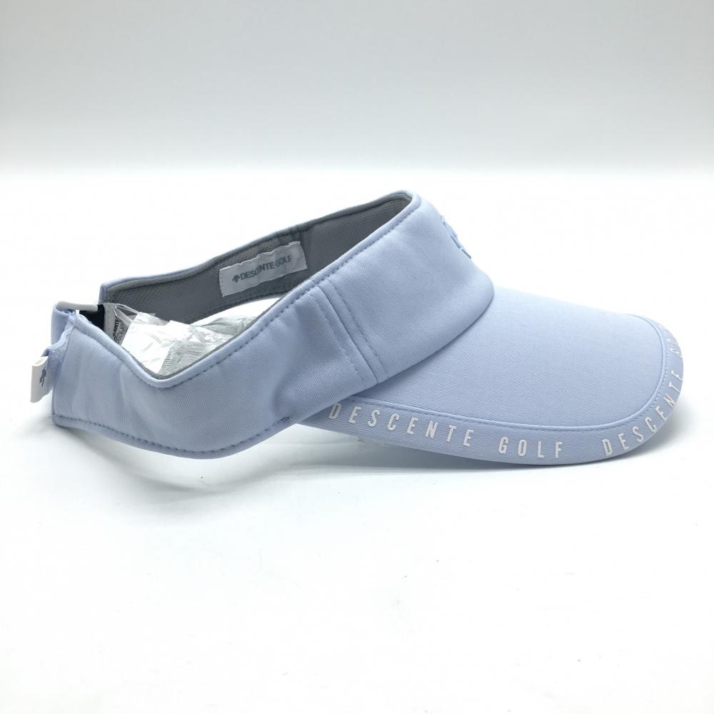 【新品】デサントゴルフ サンバイザー スモーキーライトブルー ロゴ 取外し可リボン付 レディース F(55-57cm) ゴルフウェア DESCENTE