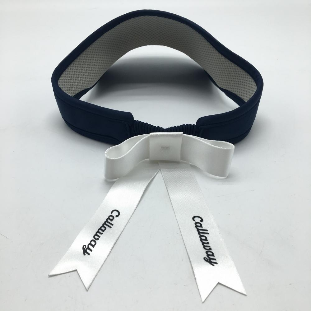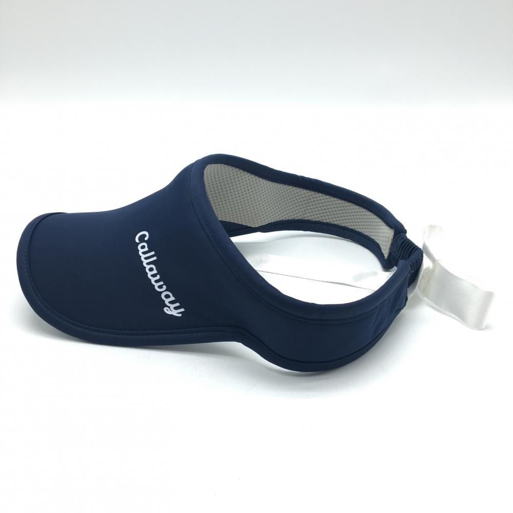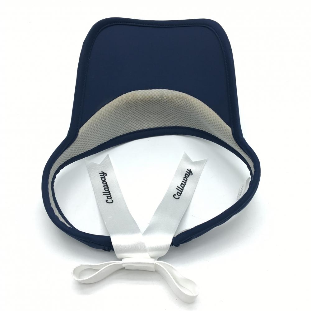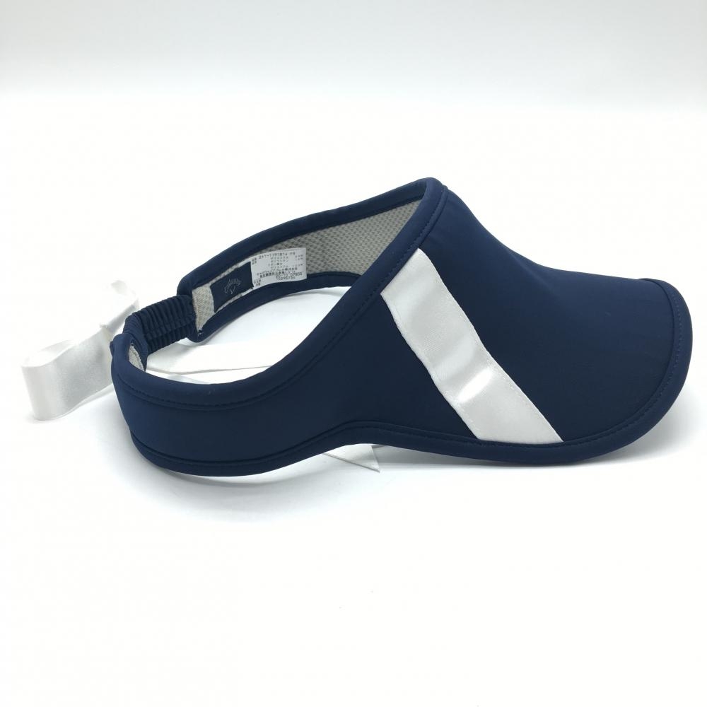 【美品】キャロウェイ サンバイザー ネイビー×白 後ろリボン レディース FR ゴルフウェア Callaway