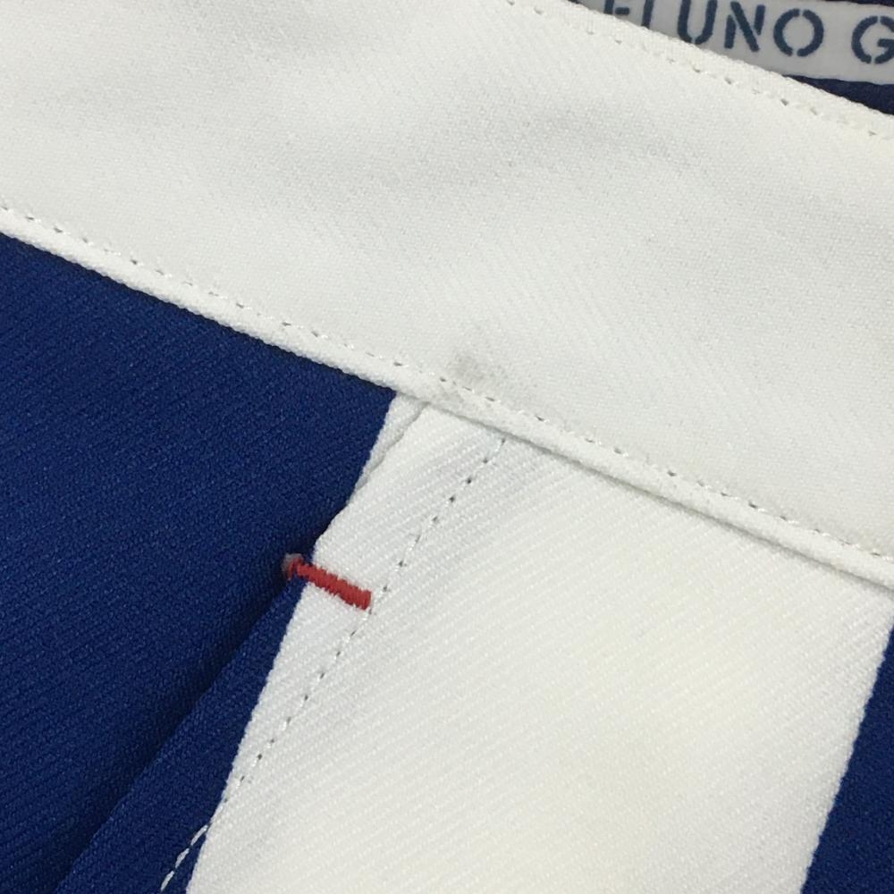ラッセルノGaeega パンツ 白×ブルー ストライプ ストレッチ レディース 2(L) ゴルフウェア RUSSELUNO