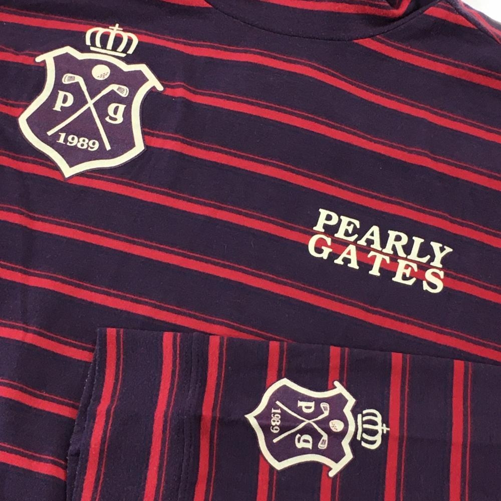 パーリーゲイツ 長袖ハイネックシャツ パープル×ピンク ボーダー レディース 2(L) ゴルフウェア PEARLY GATES