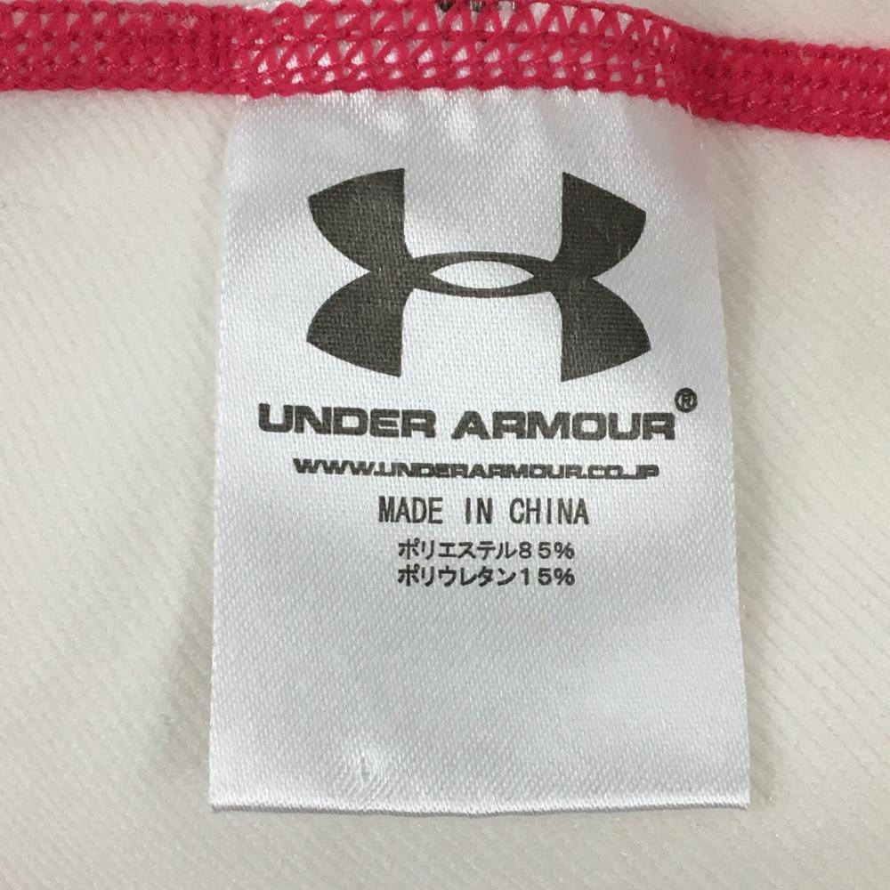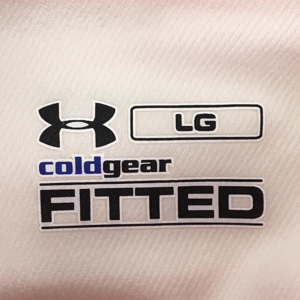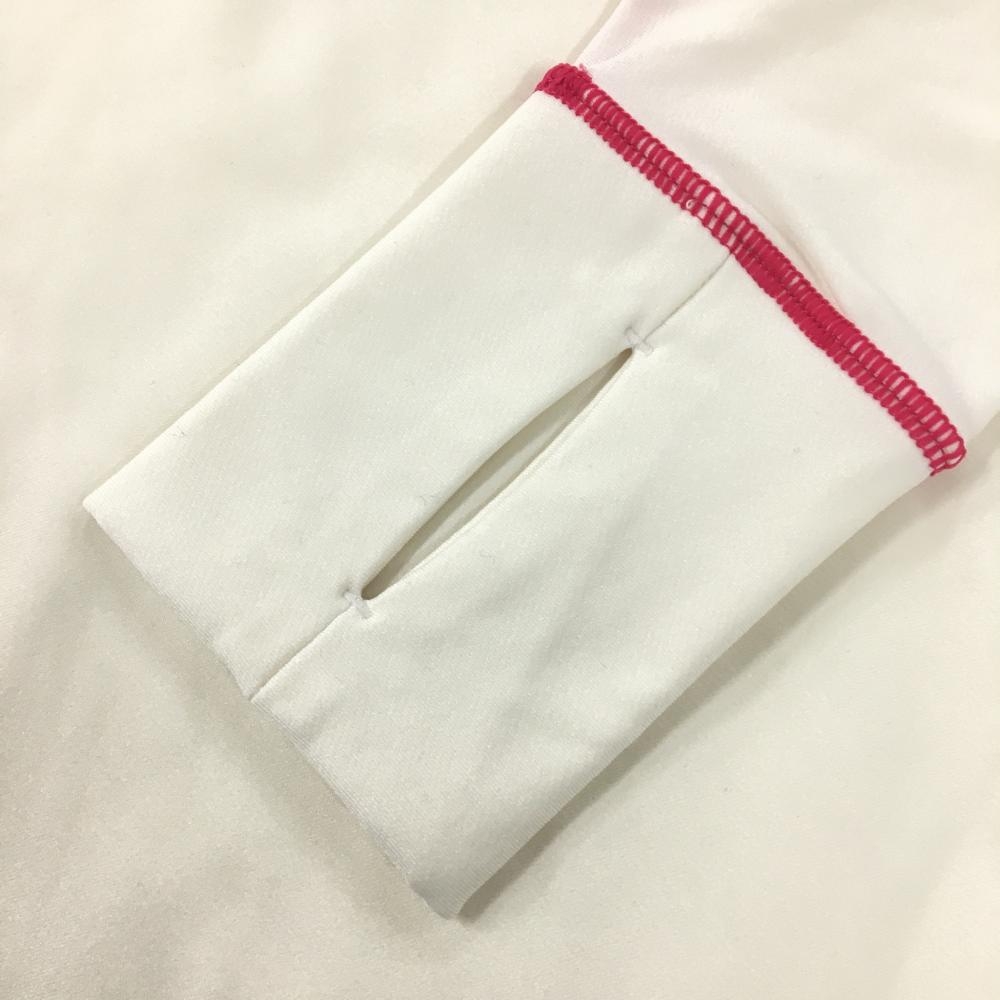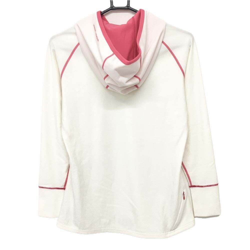 【超美品】アンダーアーマー フード付長袖Tシャツ 白×ピンク ステッチ 裏微起毛 レディース LG ゴルフウェア UNDER ARMOUR