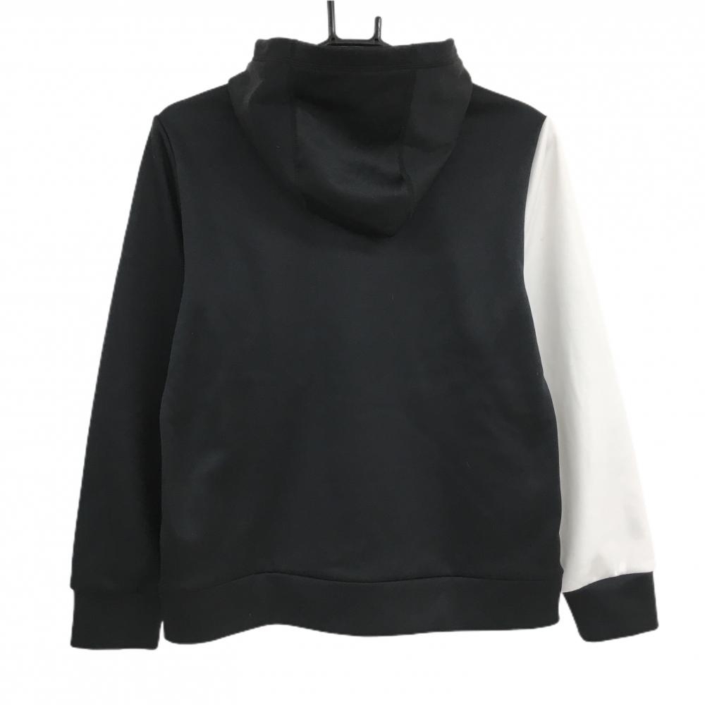 マンシングウェア ジップパーカー 黒×白 バイカラー フロントロゴ 裏微起毛 レディース L ゴルフウェア Munsingwear