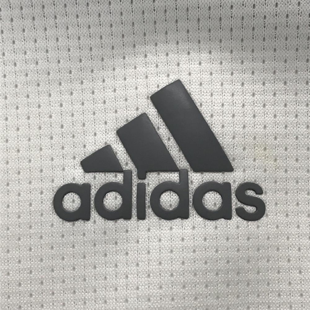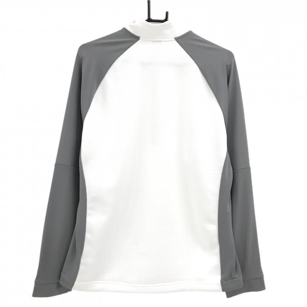 アディダス 長袖ハイネックシャツ 白×グレー メッシュ調 切替 ハーフジップ 裾ドローコード メンズ XL ゴルフウェア adidas
