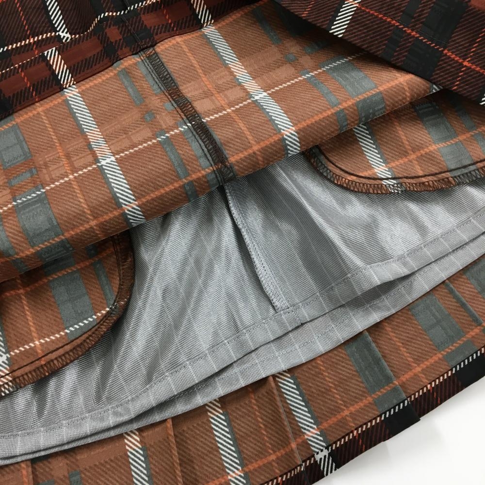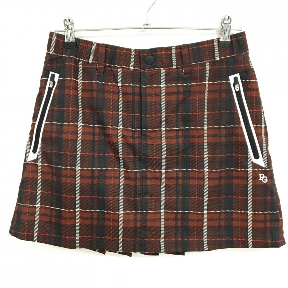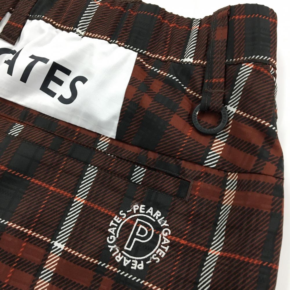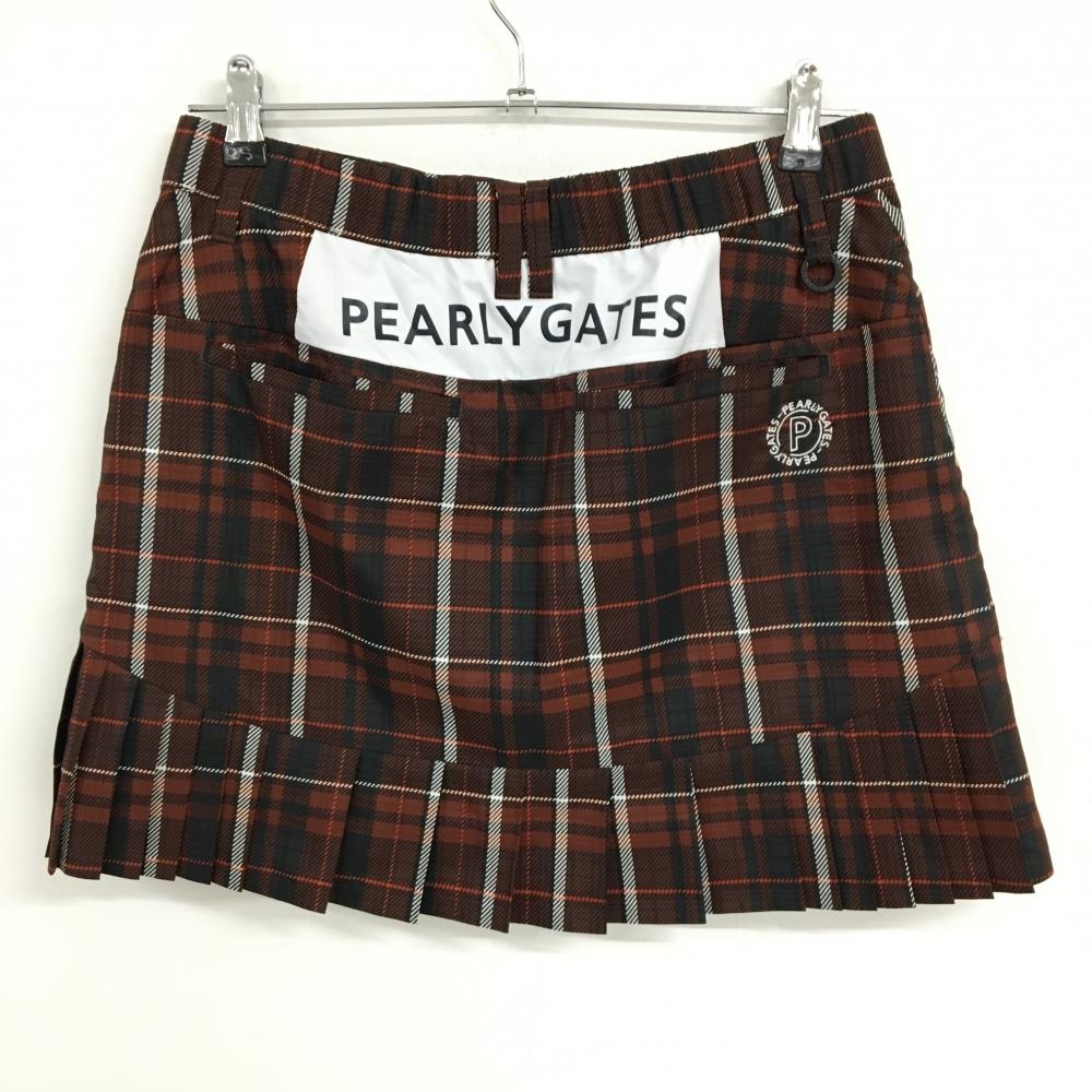【超美品】パーリーゲイツ スカート ブラウン×黒 チェック 蓄熱裏地 ウエストゴム レディース 2(L) ゴルフウェア PEARLY GATES