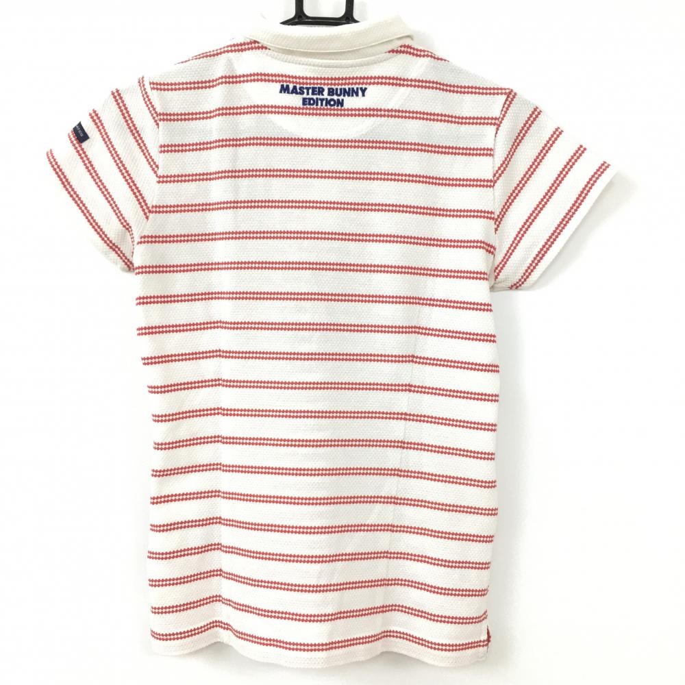 MASTER BUNNY EDITION マスターバニー 半袖ポロシャツ レッド×白 ボーダー調 丸襟 レディース 0(S) ゴルフウェア