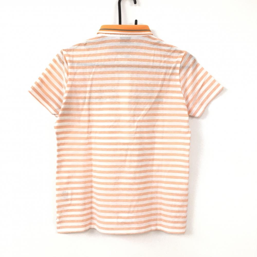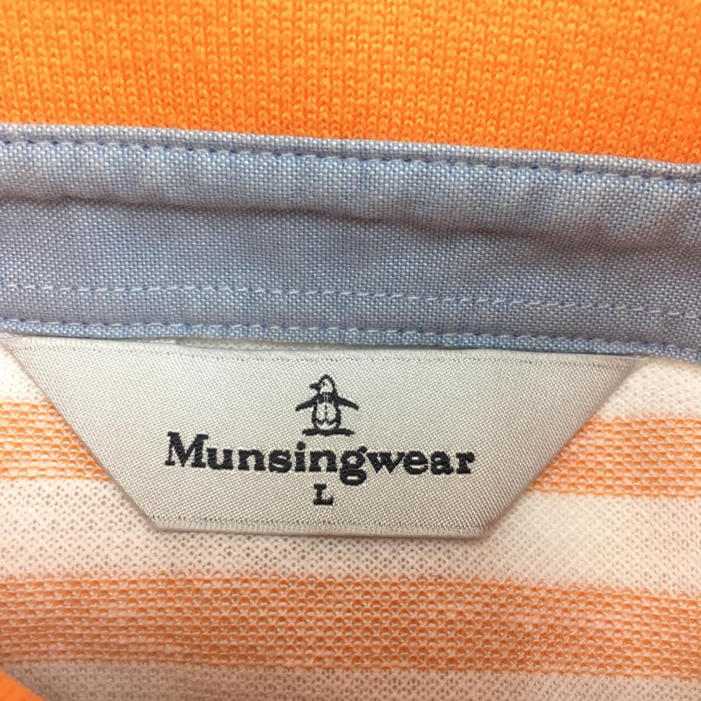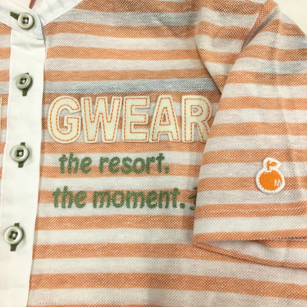 Munsingwear マンシングウェア 半袖ポロシャツ オレンジ×白 ボーダー フェルトワッペン レディース L ゴルフウェア