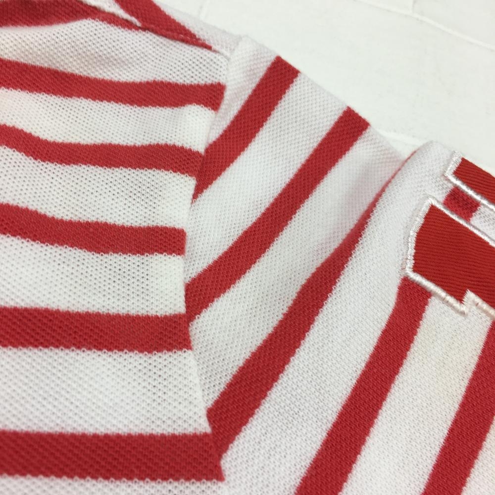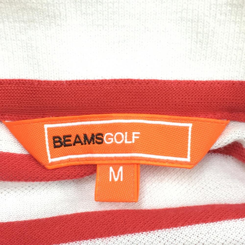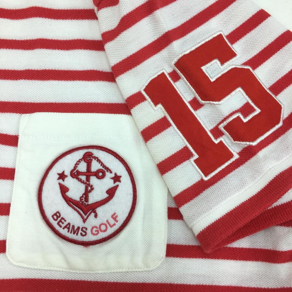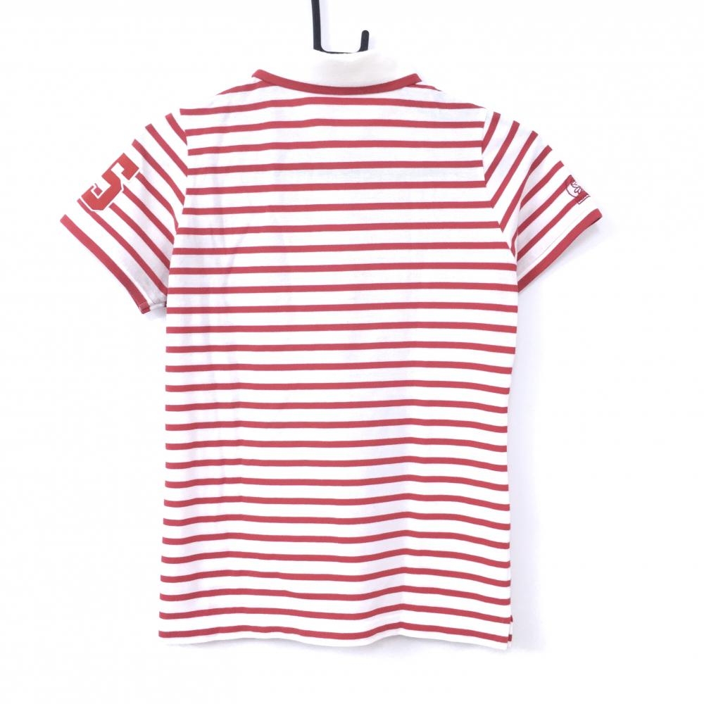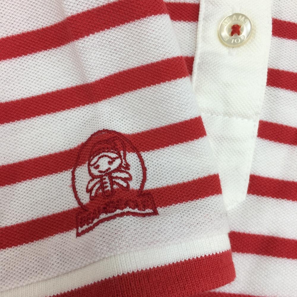 BEAMS GOLF ビームスゴルフ 半袖ポロシャツ 白×レッド ボーダー ロゴ×イカリワッペン レディース M ゴルフウェア