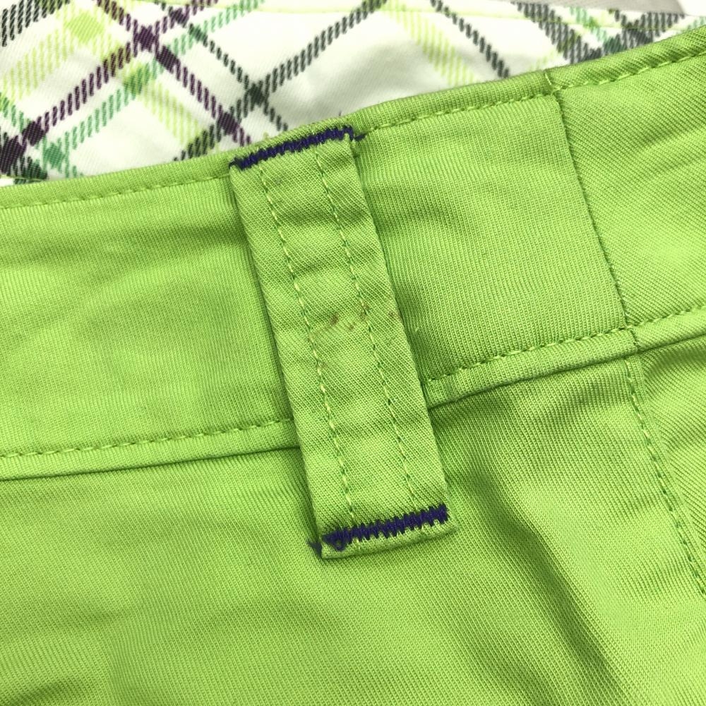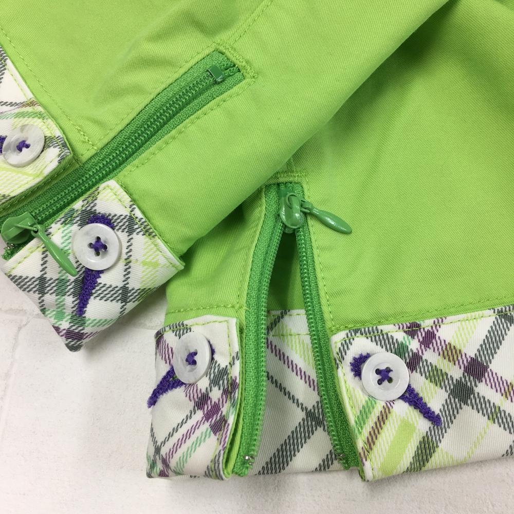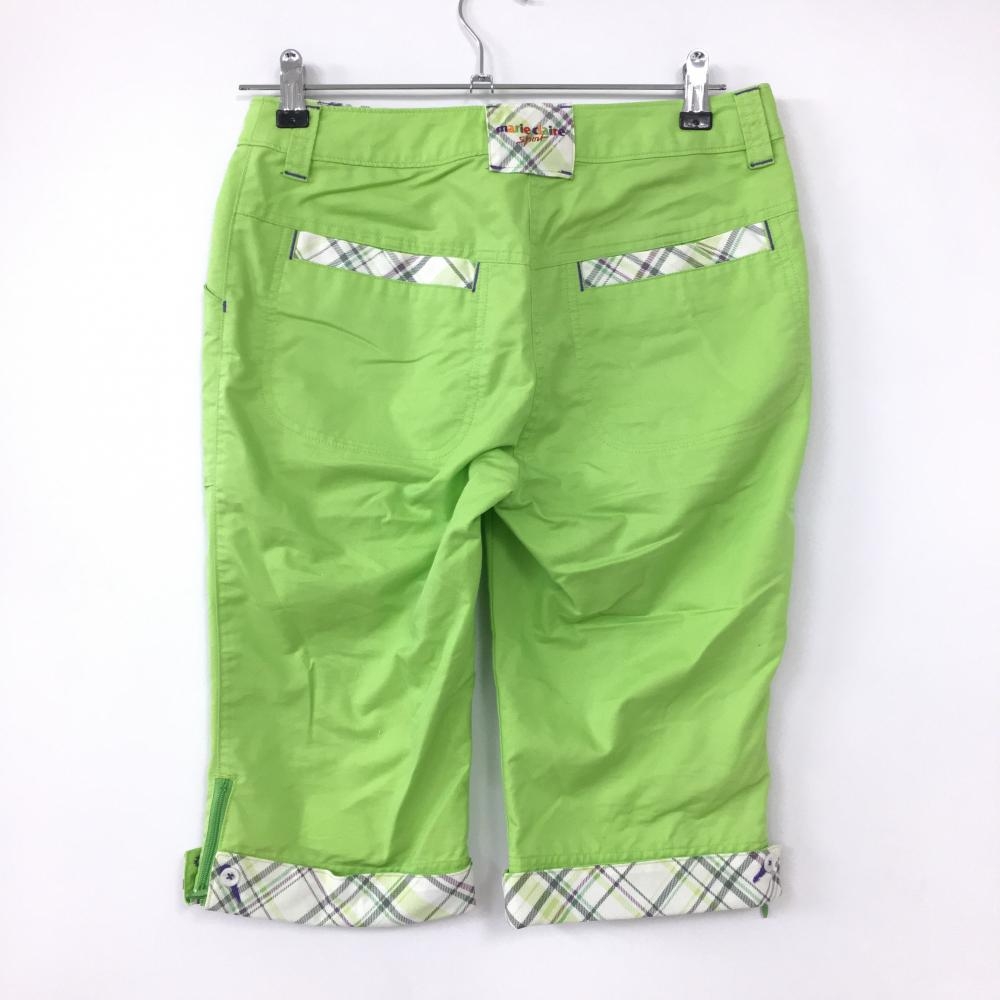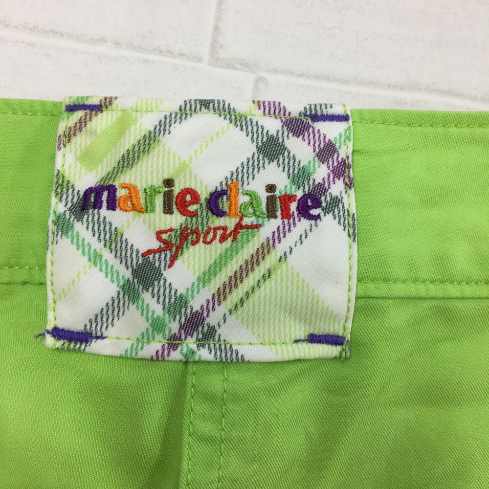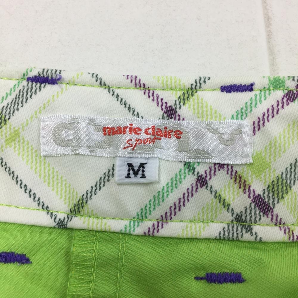 marie claire マリクレールスポール 半端丈パンツ ライトグリーン 一部チェック 裾ジップ レディース M ゴルフウェア