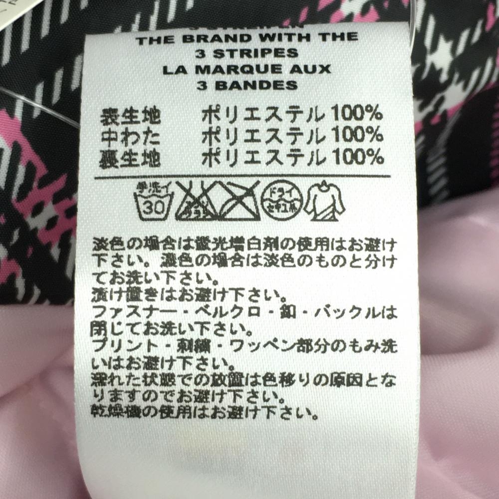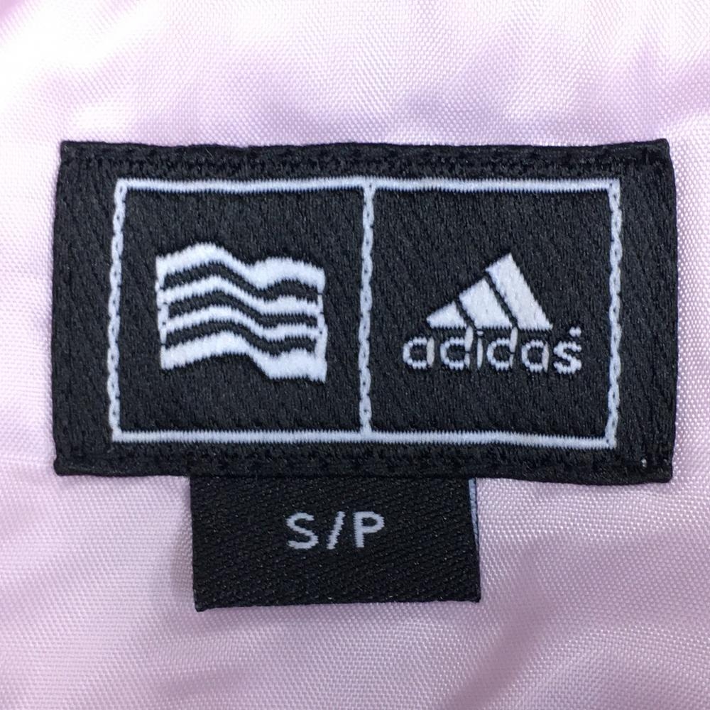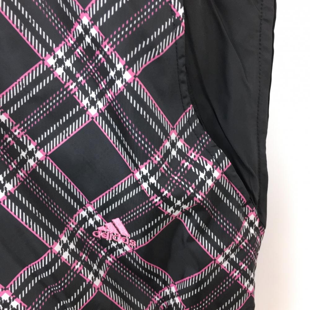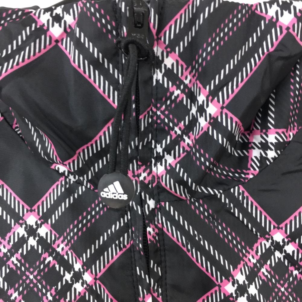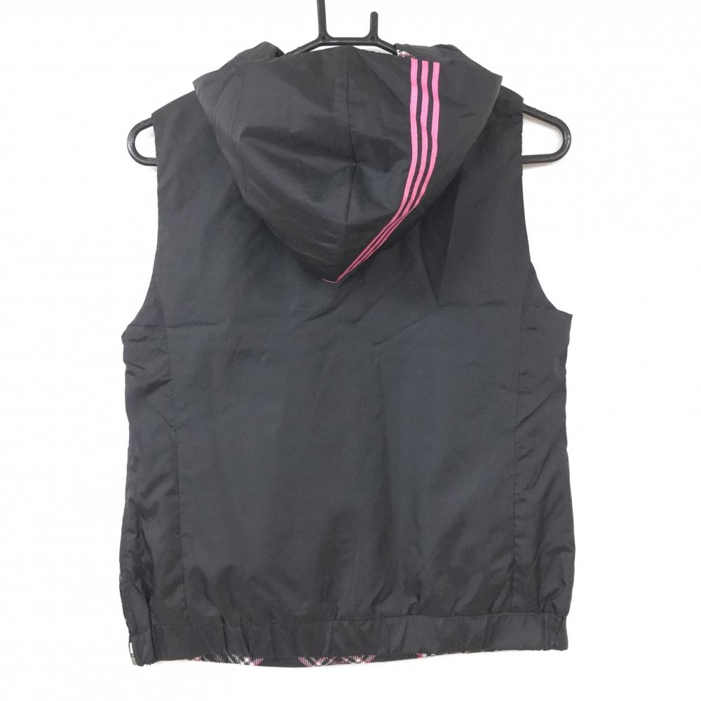 【超美品】adidas アディダス 中綿ベスト 黒×ピンク 前面チェック フード付き 3ライン レディース S/P ゴルフウェア