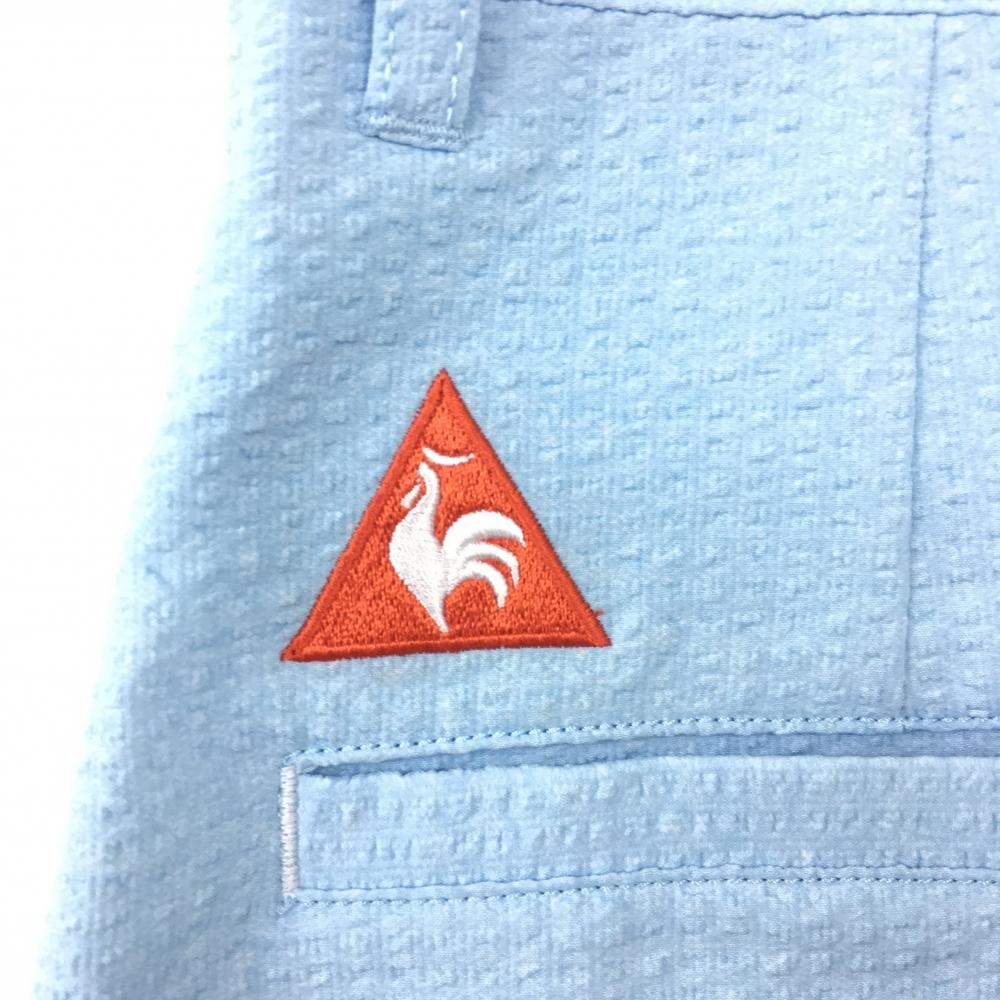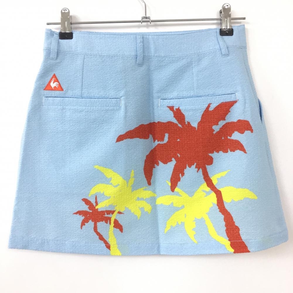 【新品】45%OFF~le coq sportif ルコック スカート ライトブルー×レッド サッカー生地 ヤシの木 レディース 9 ゴルフウェア