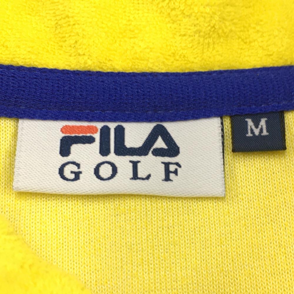 FILA GOLF フィラゴルフ 半袖シャツ イエロー×ブルー ハーフジップ パイル地 レディース M ゴルフウェア