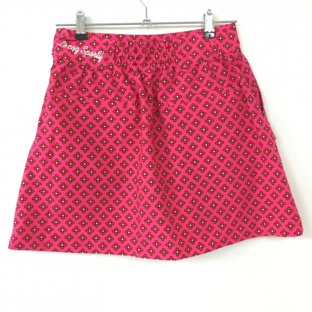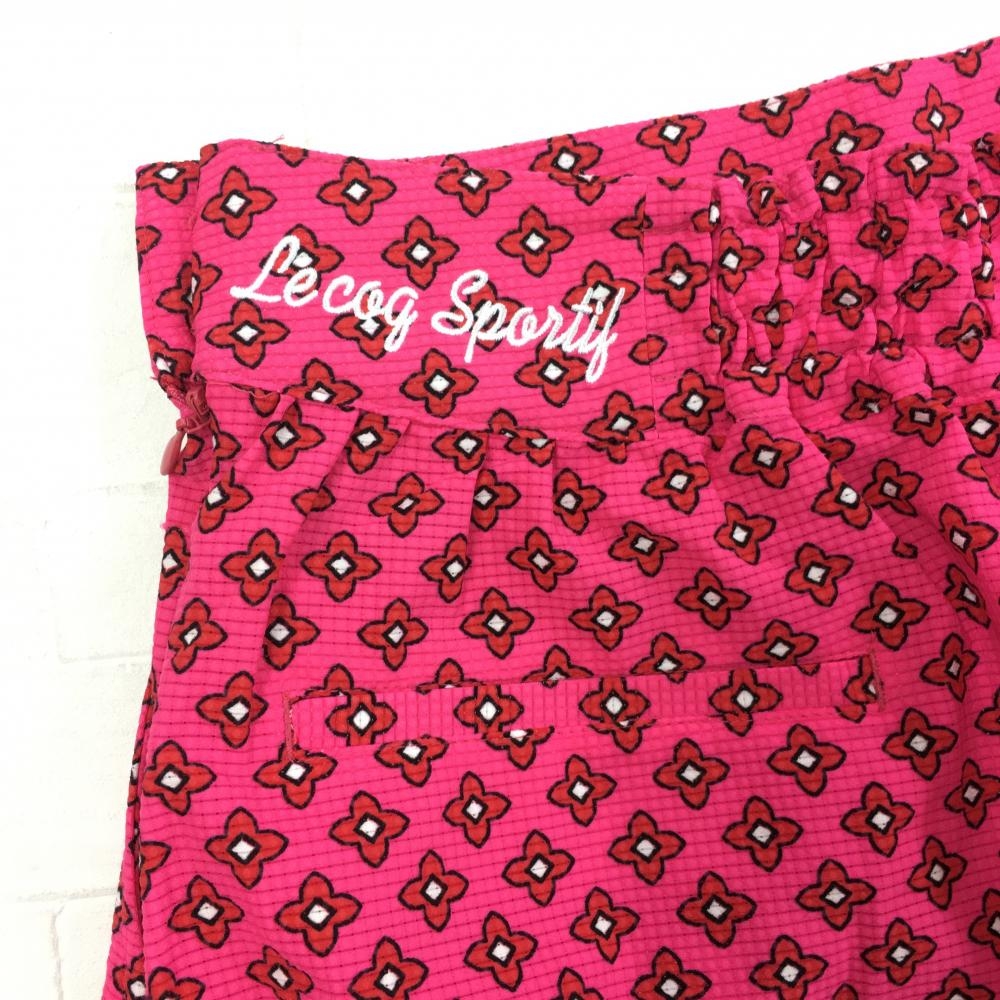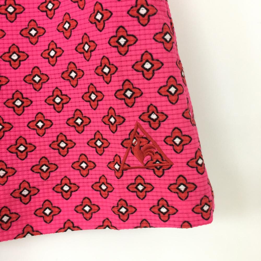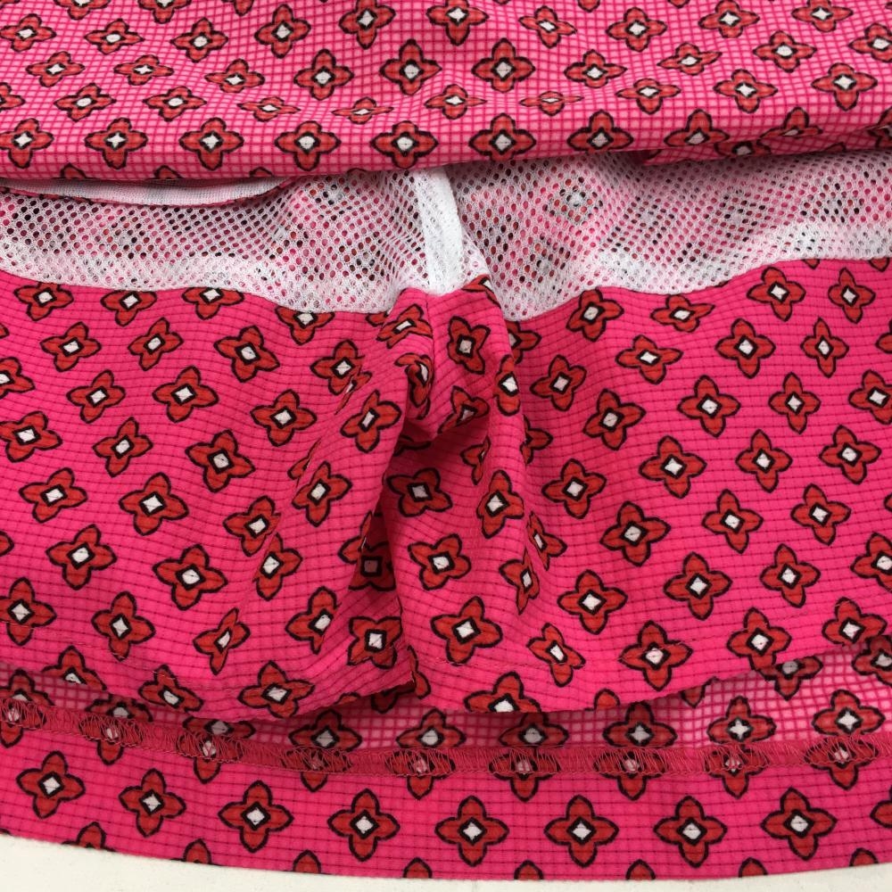 【美品】le coq sportif ルコック ストレッチスカート ピンク×レッド 花柄 メッシュ生地 レディース 9 ゴルフウェア