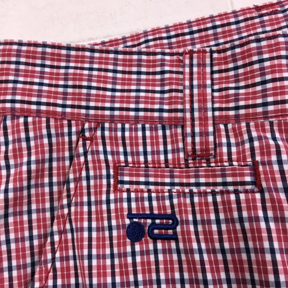 【超美品】Rosasen ロサーセン パンツ レッド×黒 チェック柄 総柄 5ポケット やや薄手 メンズ 82 ゴルフウェア