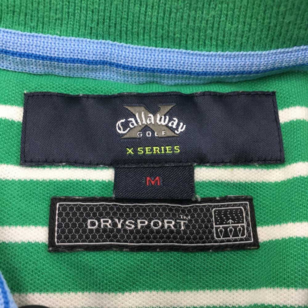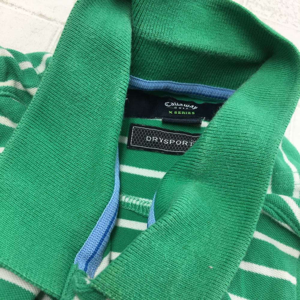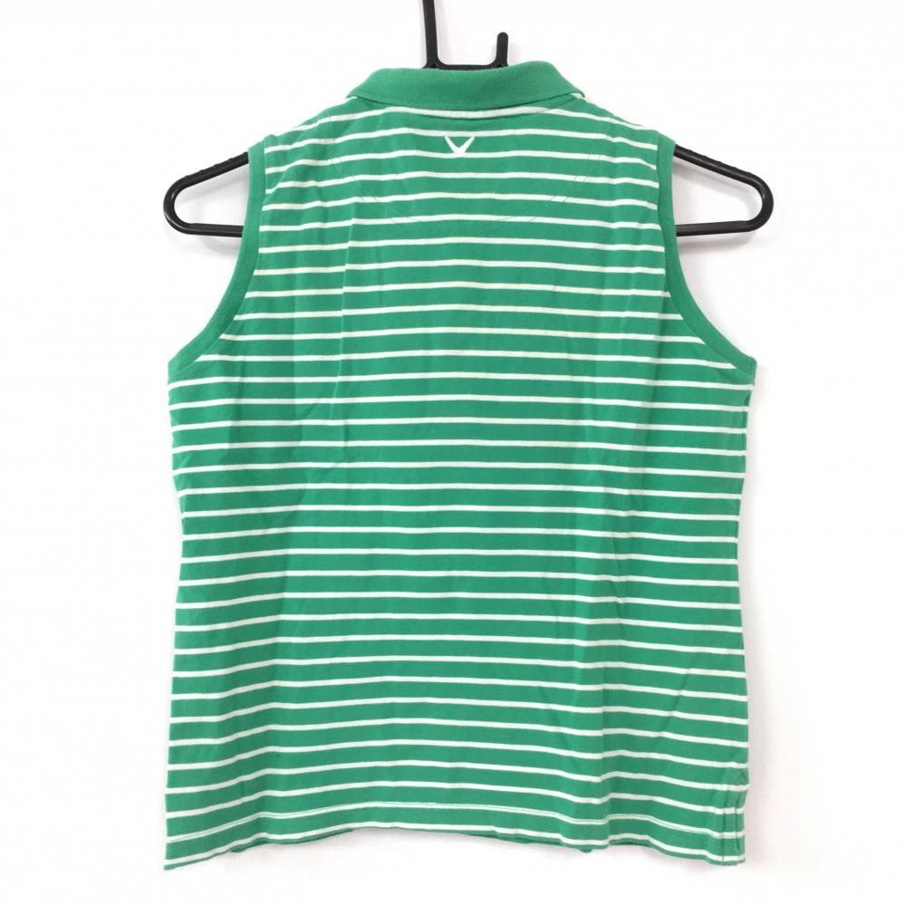 Callaway キャロウェイ ノースリーブポロシャツ グリーン×白 ボーダー DRYSPORT レディース M ゴルフウェア