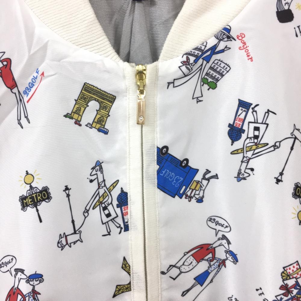 23区ゴルフ 異素材ジャケットブルゾン 白×レッド 一部柄 ニット レディース I(M) ゴルフウェア 23区