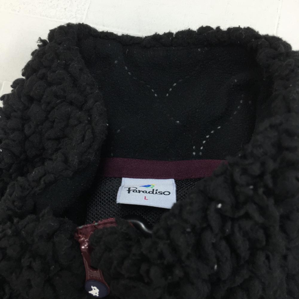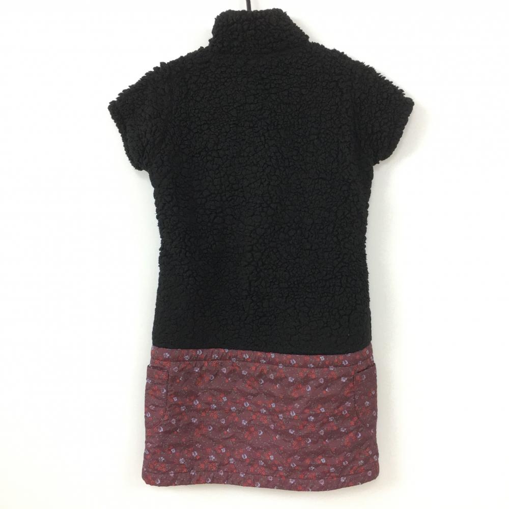 パラディーゾ 半袖ボア切替ワンピース 黒×ボルドー 一部花柄 裏起毛 ハーフジップ レディース L ゴルフウェア Paradiso