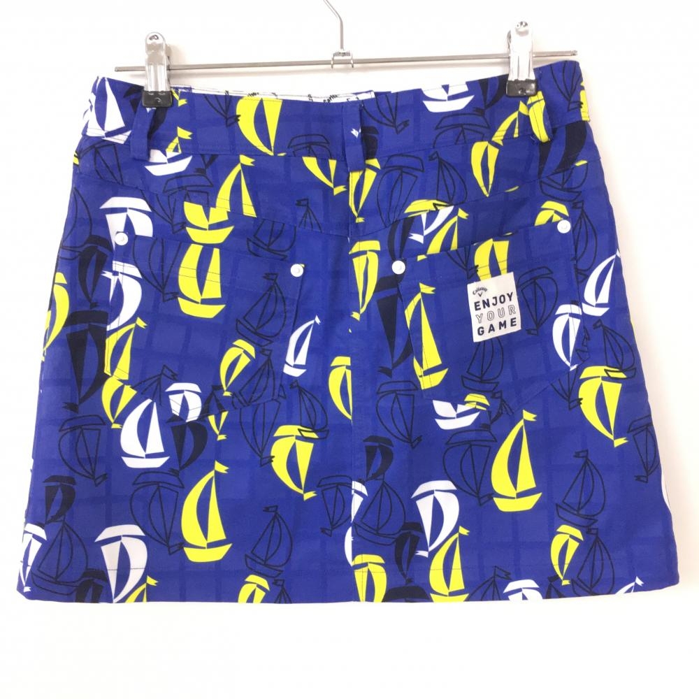 【超美品】キャロウェイ スカート ブルー×イエロー 格子柄織生地×ヨット柄 ストレッチ レディース L ゴルフウェア Callaway
