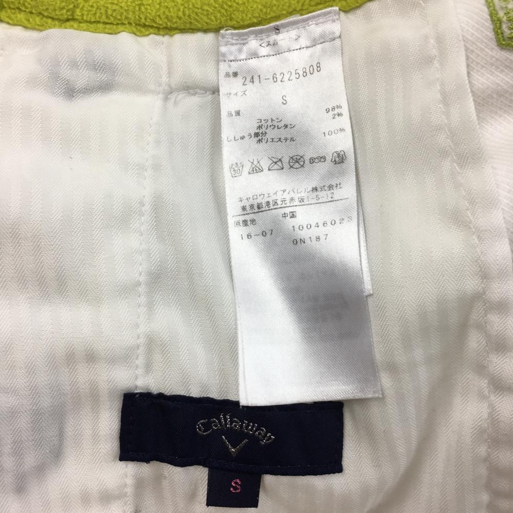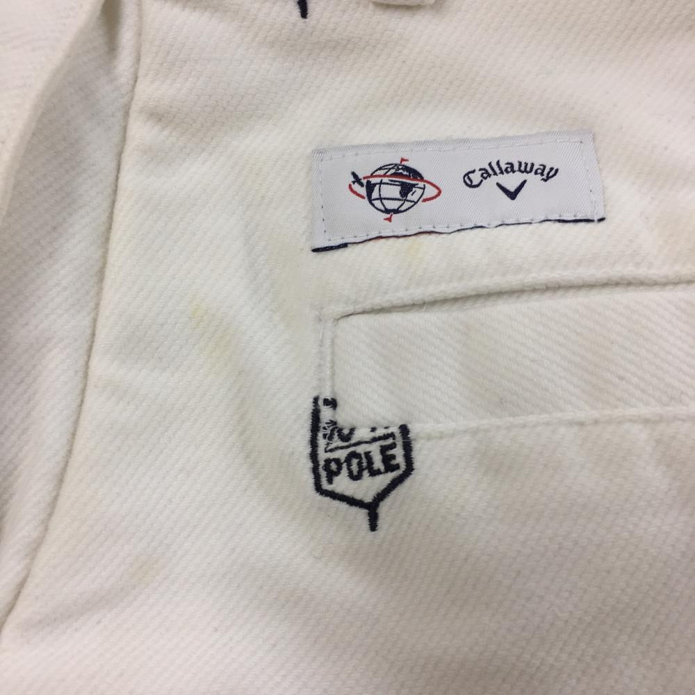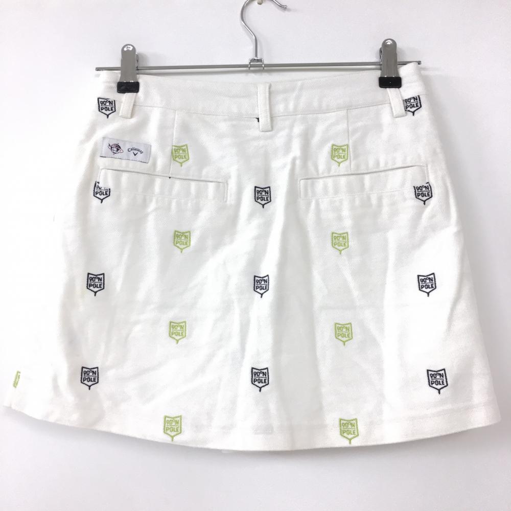 キャロウェイ キュロットスカート 白×ネイビー×ライトグリーン 刺しゅう総柄 ウエスト内側フリース レディース S ゴルフウェア Callaway