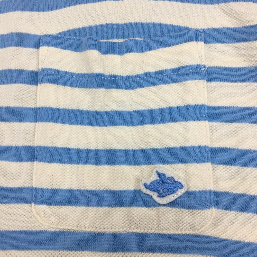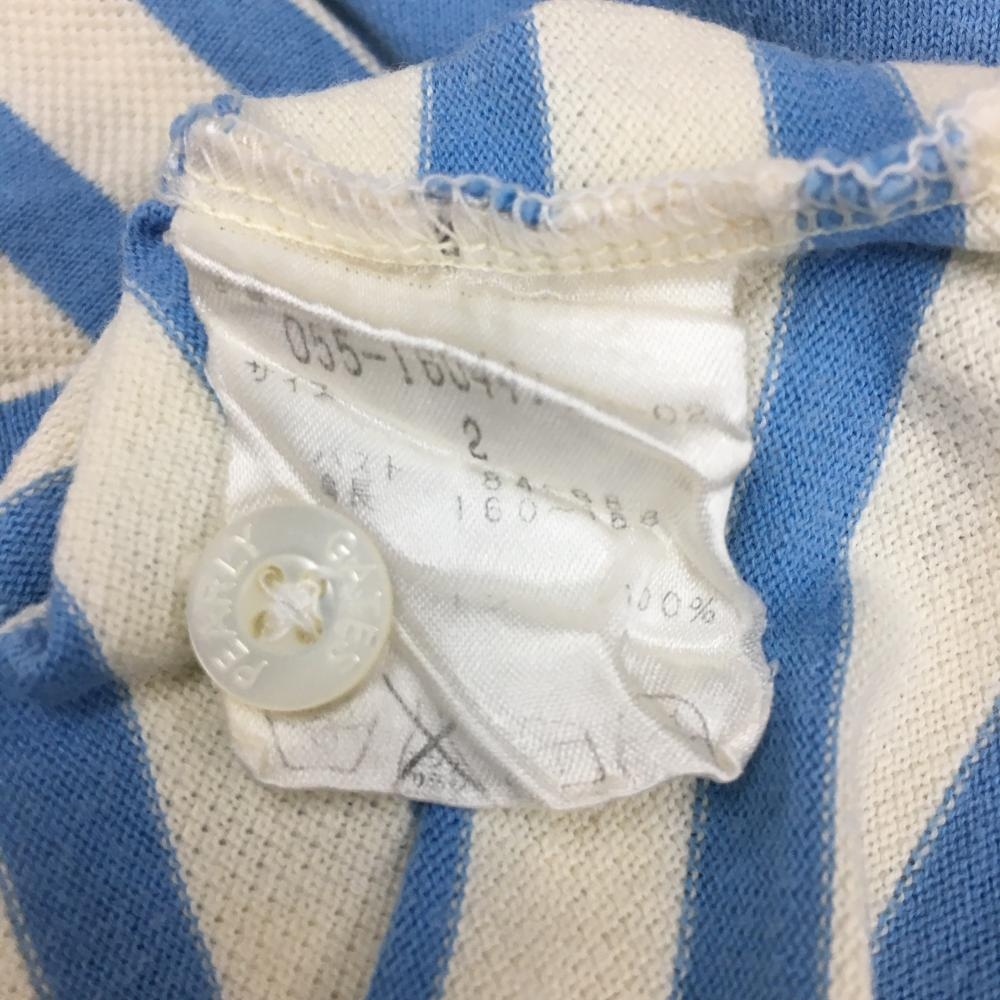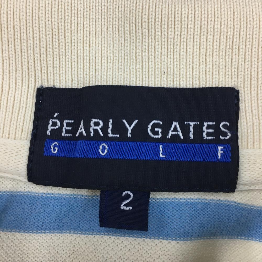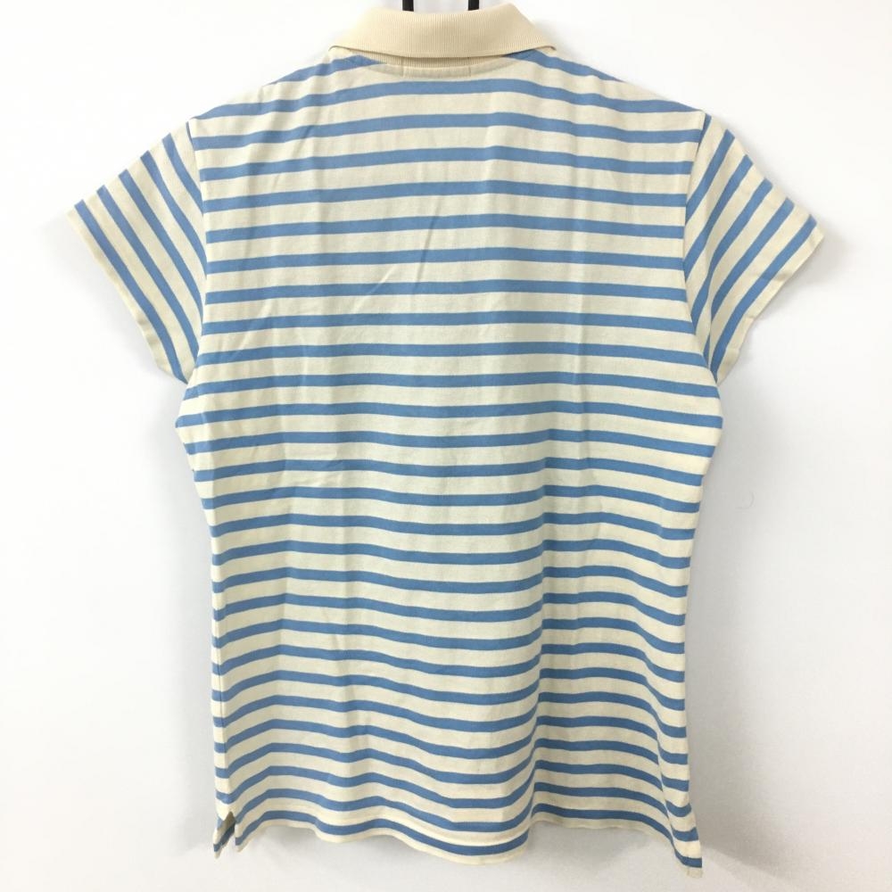 パーリーゲイツ 半袖ポロシャツ ライトベージュ×ライトブルー ボーダー 胸ポケット レディース 2(L) ゴルフウェア PEARLY GATES