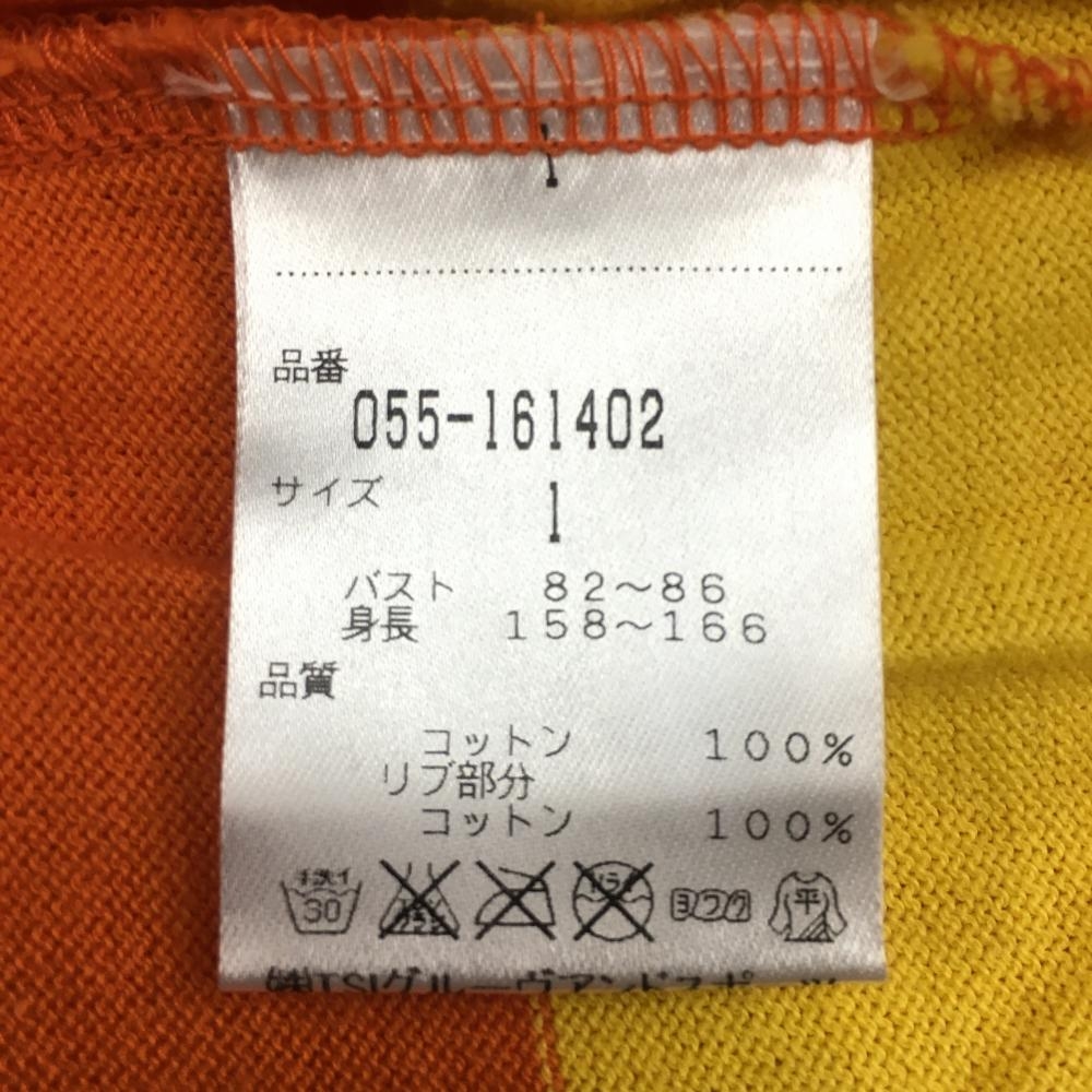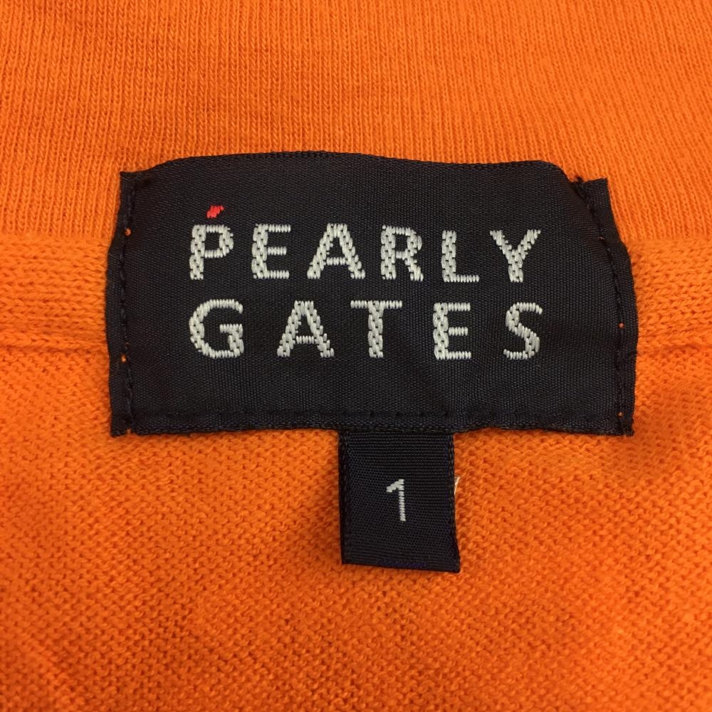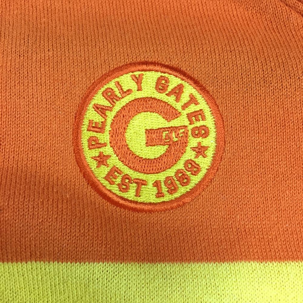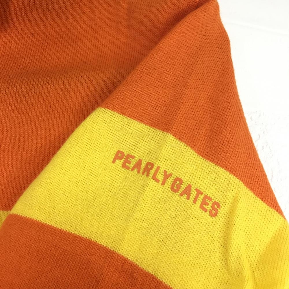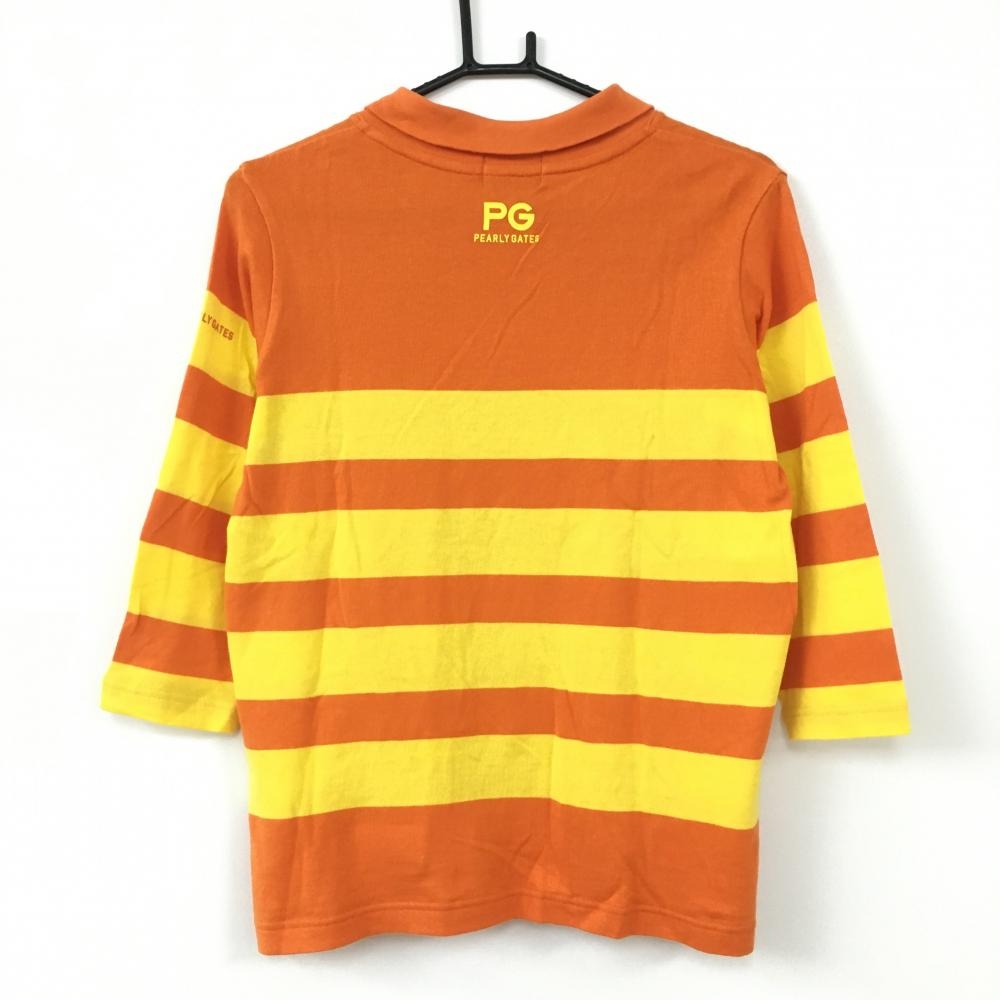【美品】パーリーゲイツ 襟付き長袖シャツ オレンジ×イエロー ボーダー柄 七分丈 レディース 1(M) ゴルフウェア PEARLY GATES