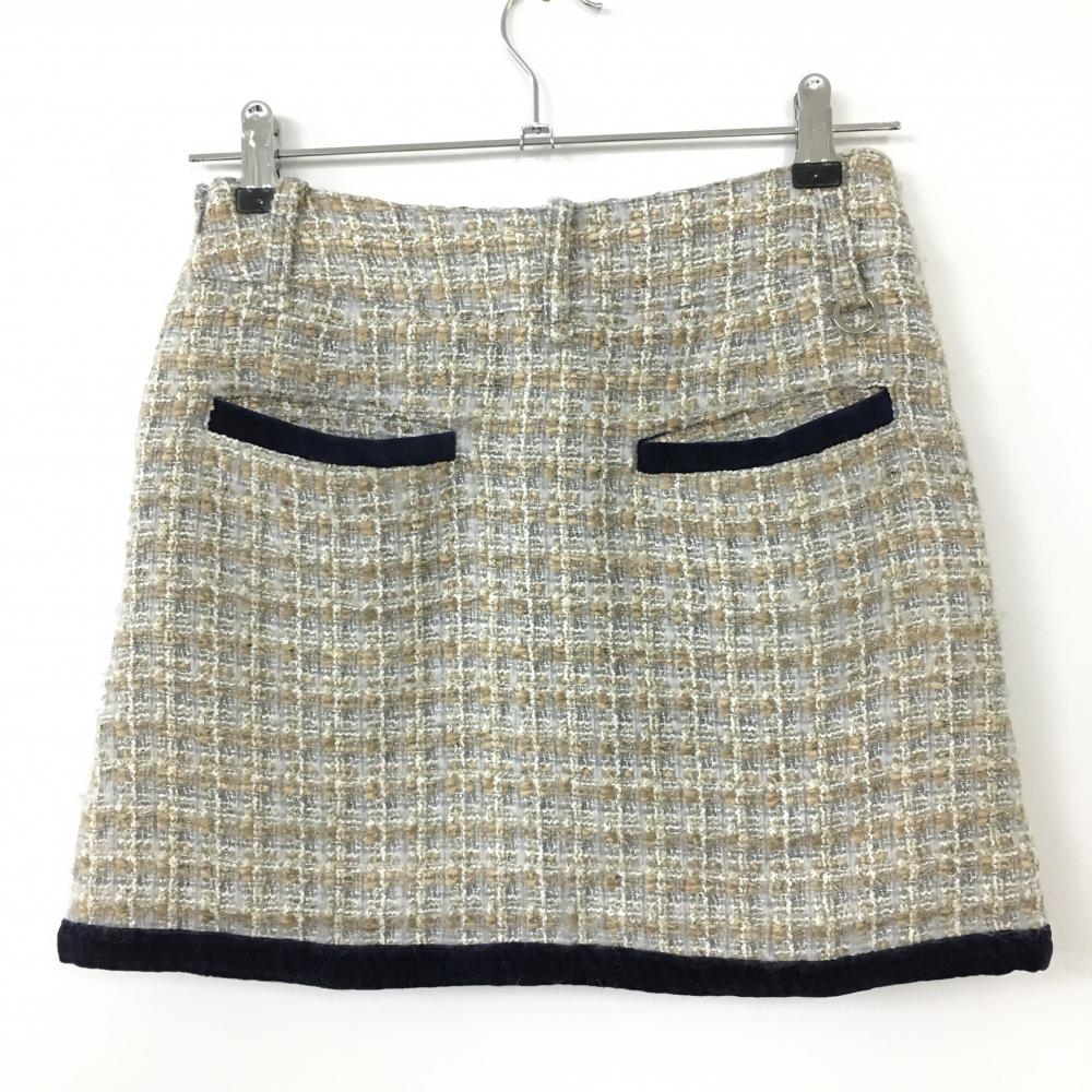 【美品】アンパスィ スカート ベージュ×グレー チェック ツイード 裏地付き レディース S ゴルフウェア and per se