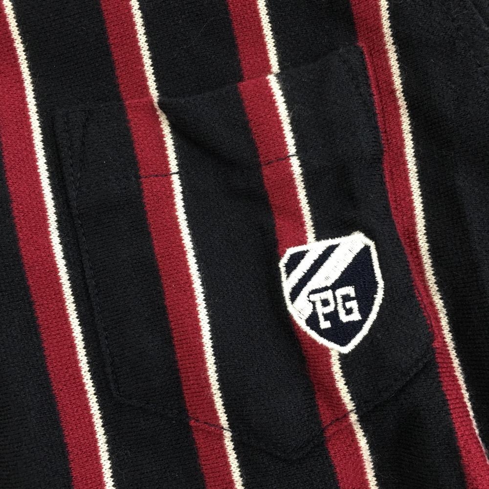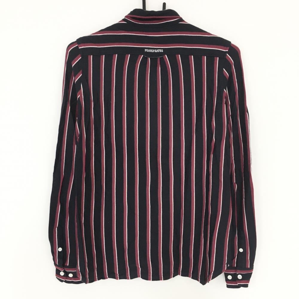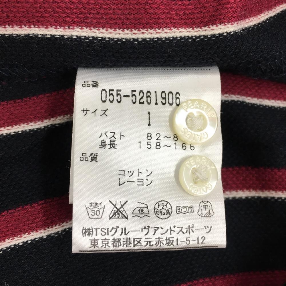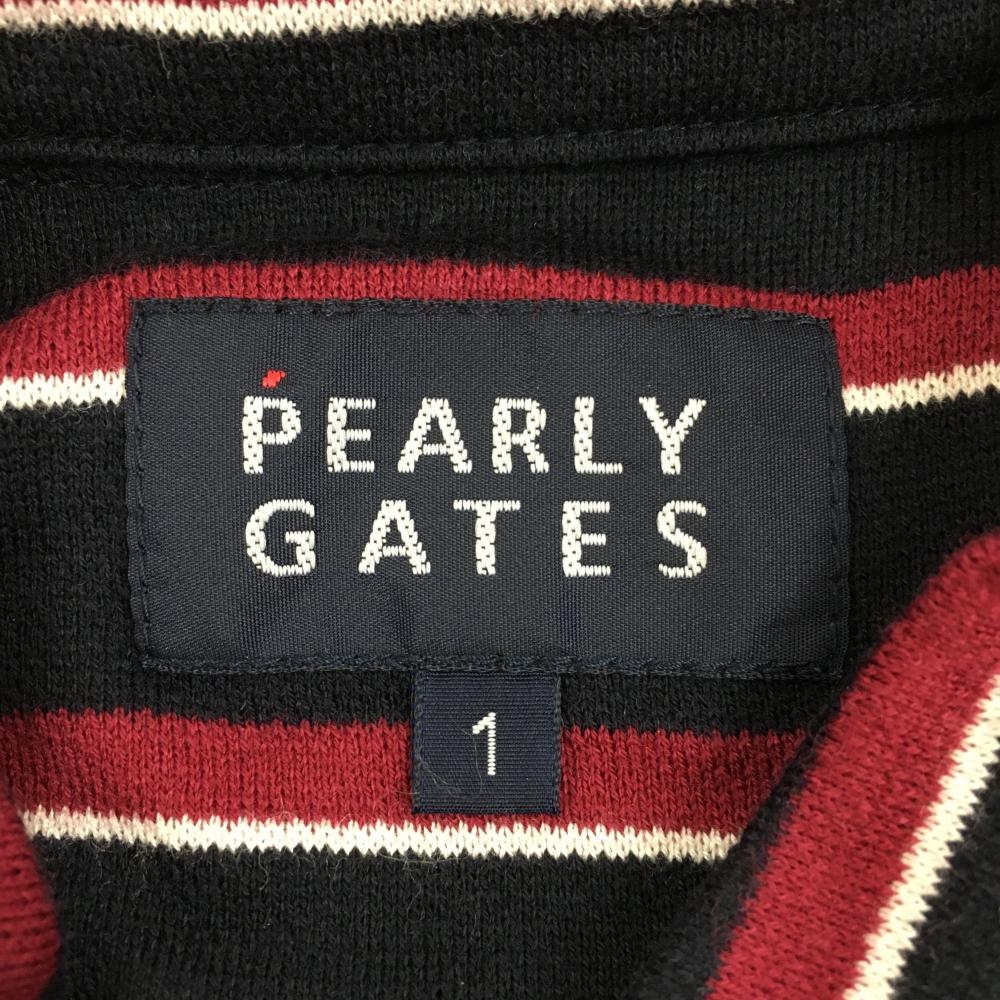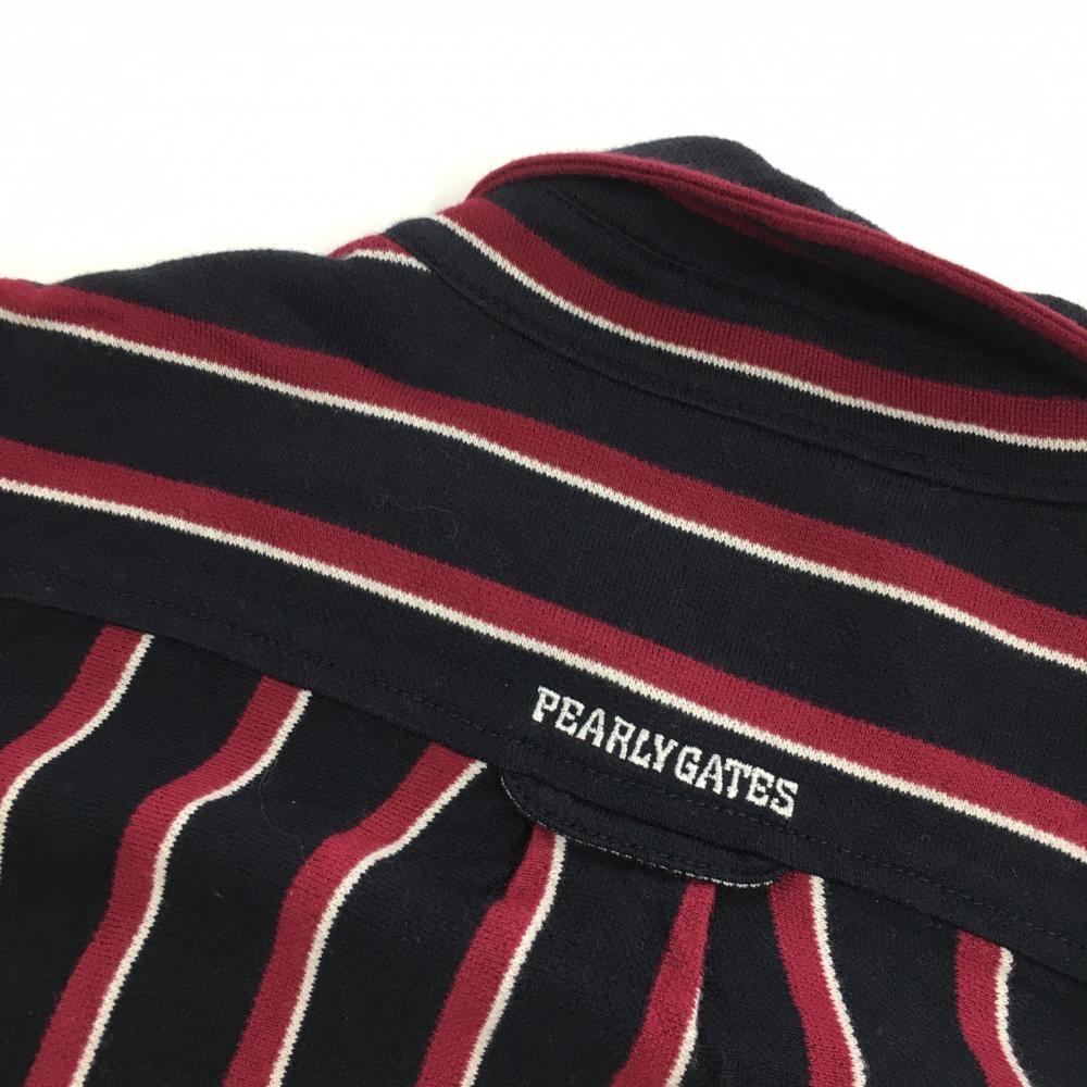 【美品】パーリーゲイツ 長袖ポロシャツ ダークネイビー×ボルドー ストライプ ボタンダウン レディース 1(M) ゴルフウェア PEARLY GATES
