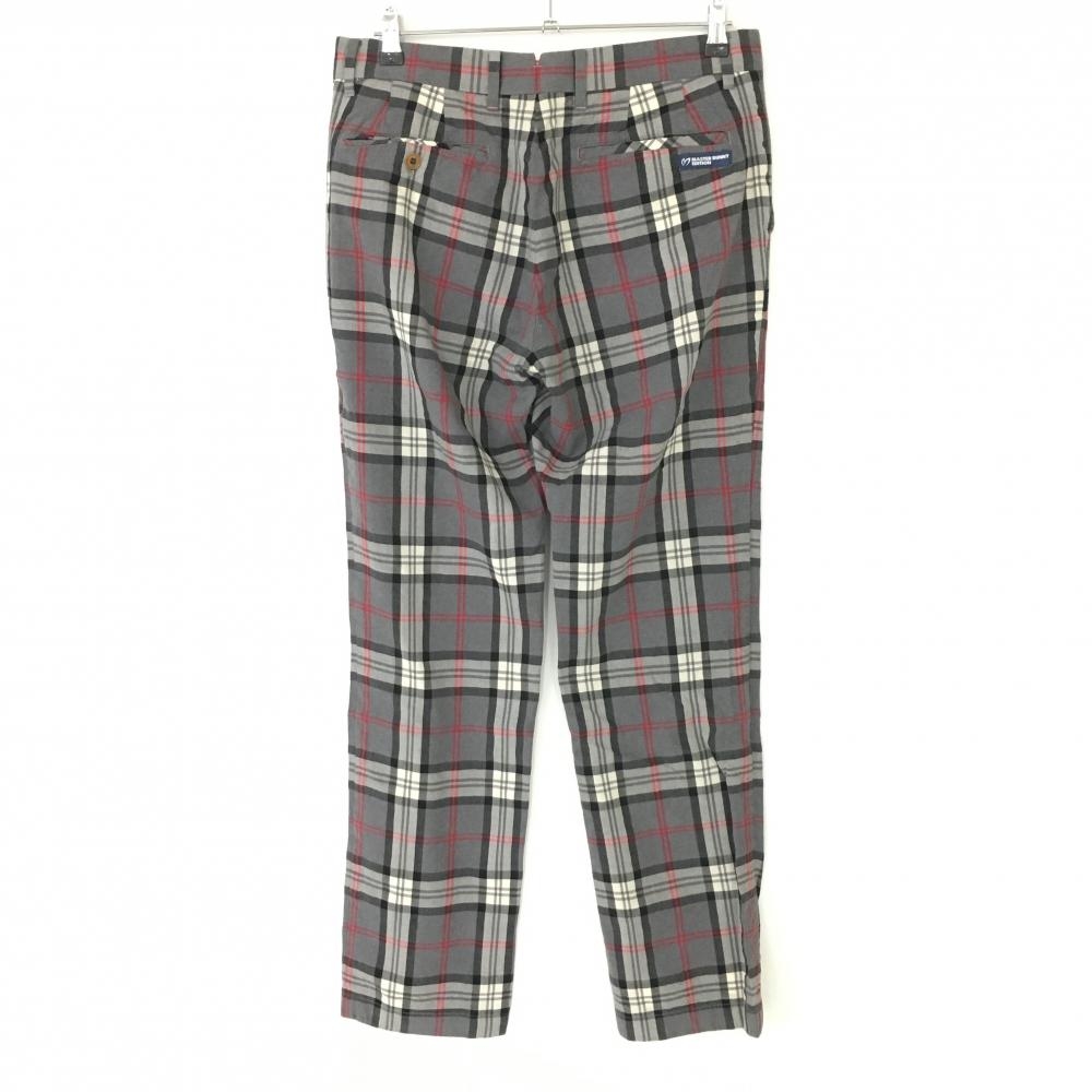【美品】マスターバニー ウールパンツ グレー×レッド チェック柄 ウール98% メンズ 5(L) ゴルフウェア MASTER BUNNY EDITION