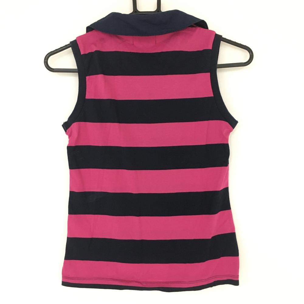 バービーゴルフbyパーリーゲイツ ノースリーブポロシャツ ネイビー×ピンク ボーダー レディース 0(S) ゴルフウェア PEARLY GATES