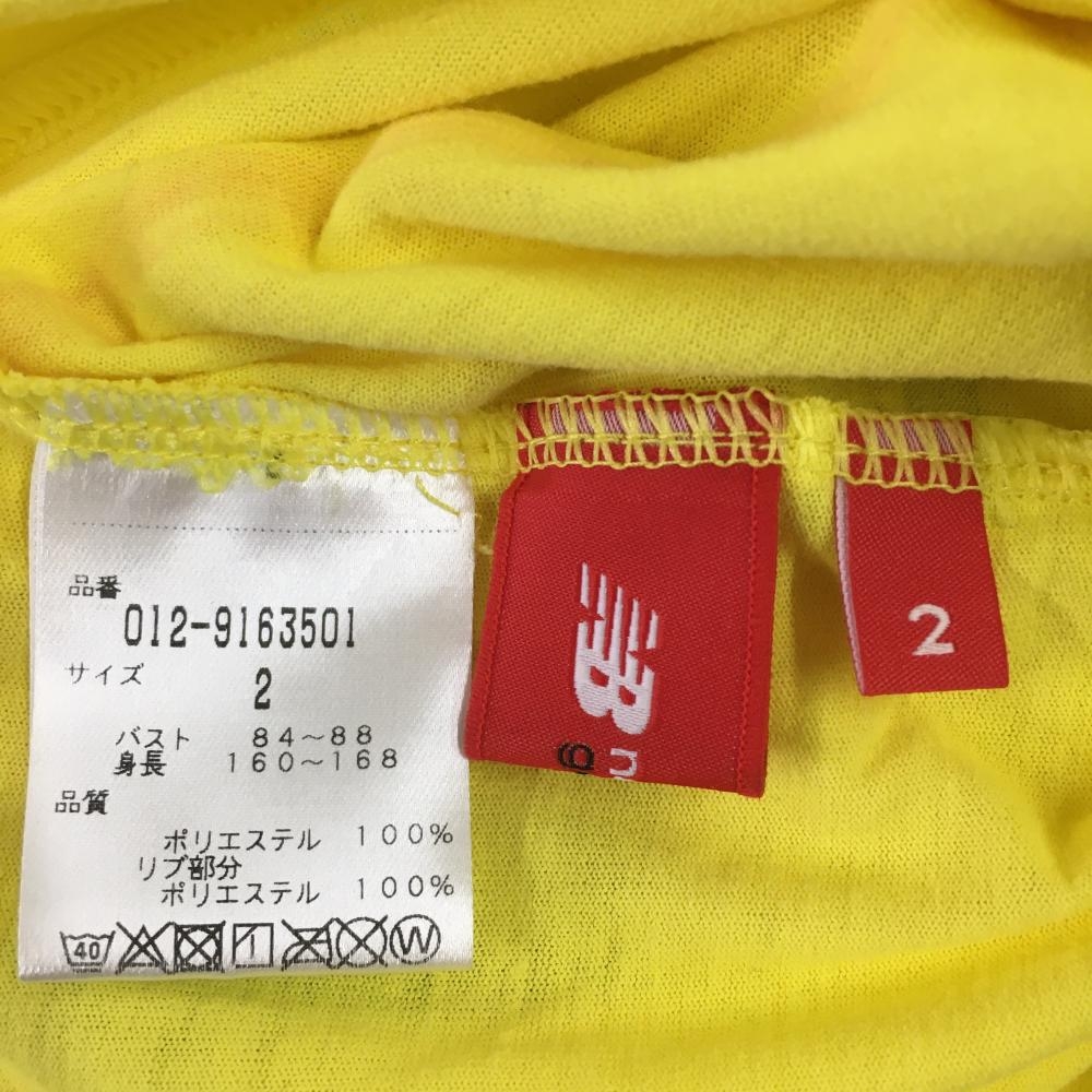 【美品】ニューバランスゴルフ 半袖Tシャツ イエロー×ライトブルー バックボーダー レディース 2(L) ゴルフウェア New Balance