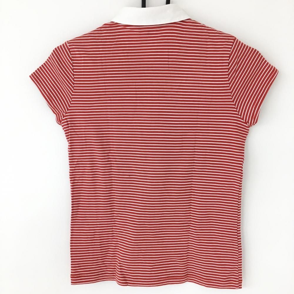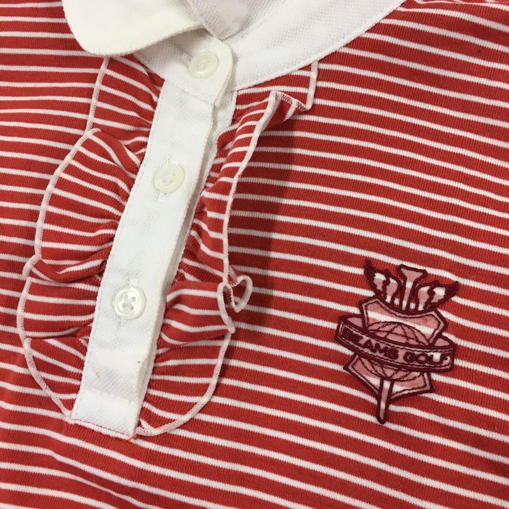 ビームスゴルフ 半袖ポロシャツ レッド×白 ボーダー 前立てフリル レディース S ゴルフウェア BEAMS GOLF