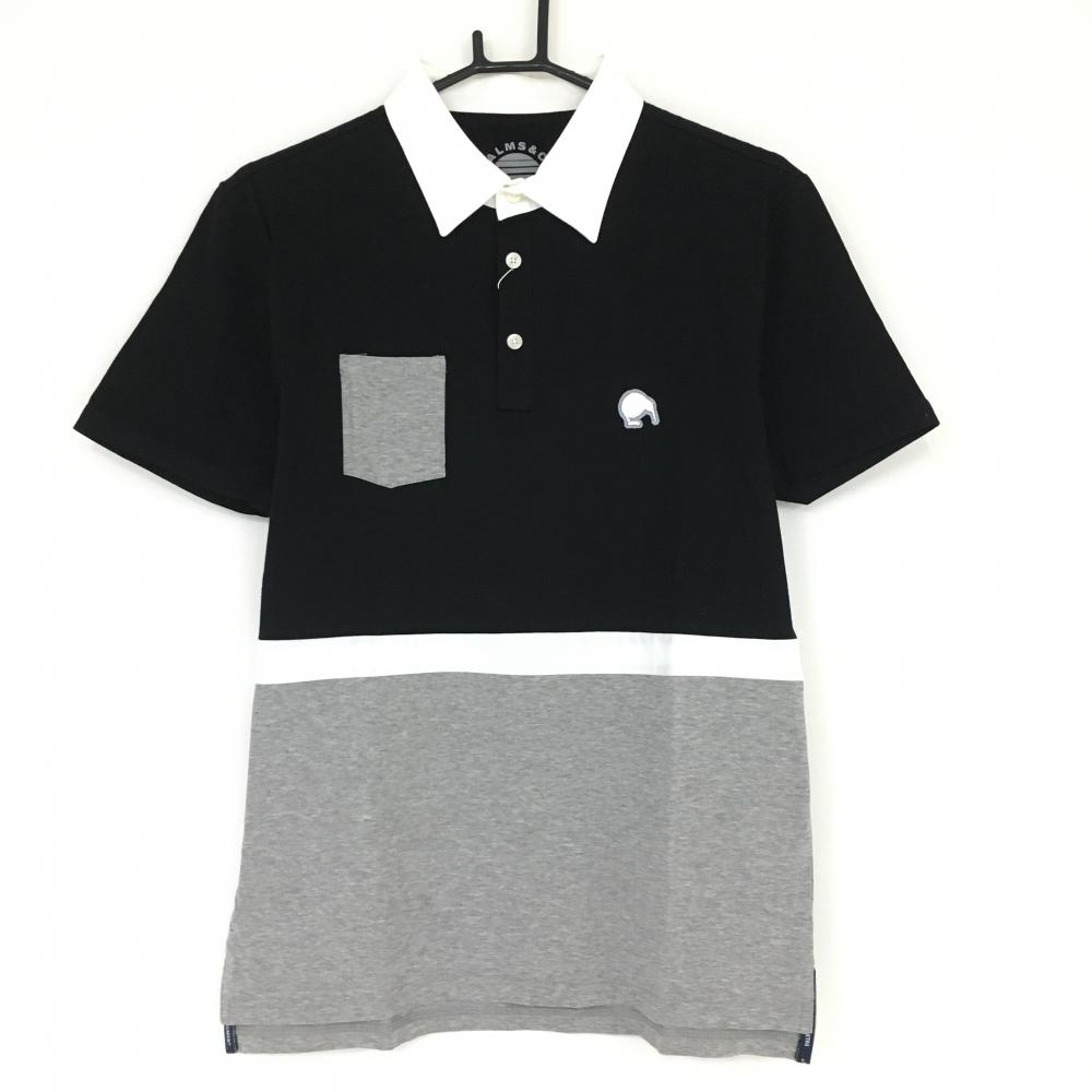 パームスアンドコー 半袖ポロシャツ 黒×杢グレー タグ付 バイカラー メンズ M ゴルフウェア PALMS&CO.