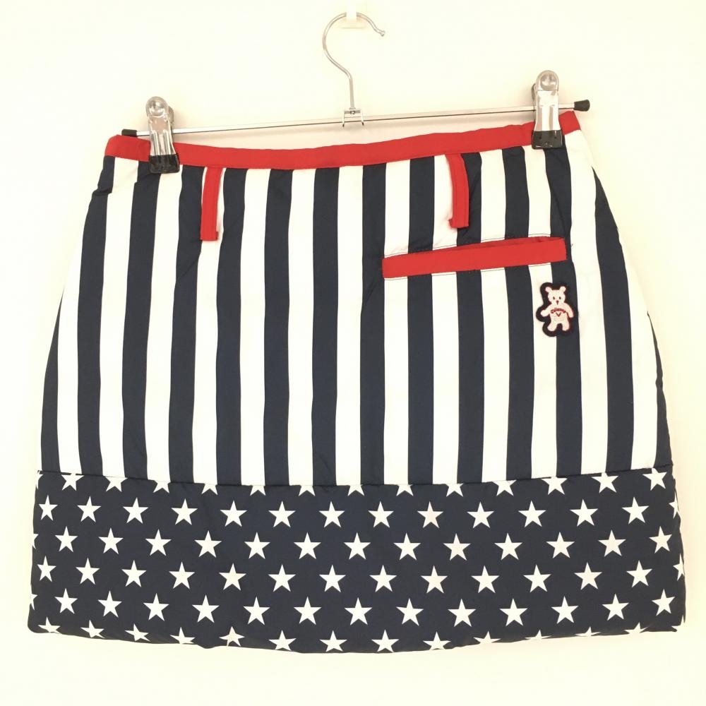 【美品】キャロウェイ ダウンスカート 白×ネイビー 星条旗柄 ダウン90% レディース S ゴルフウェア Callaway