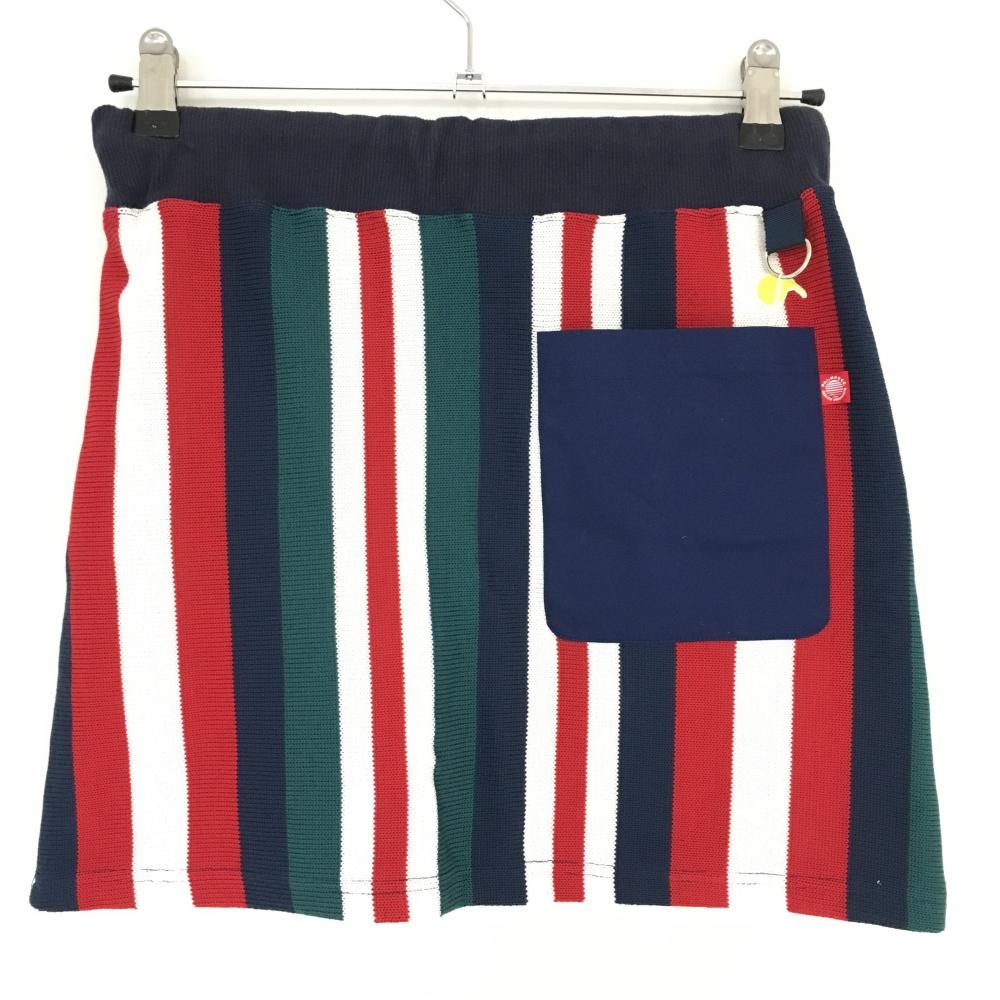 【新品】パームスアンドコー ニットスカート ネイビー×白×レッド ストライプ ウエストゴム レディース S ゴルフウェア PALMS&CO.