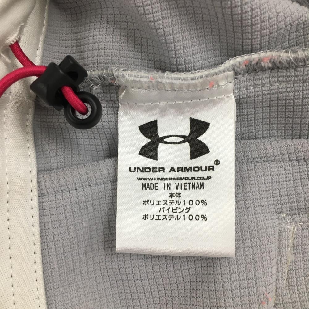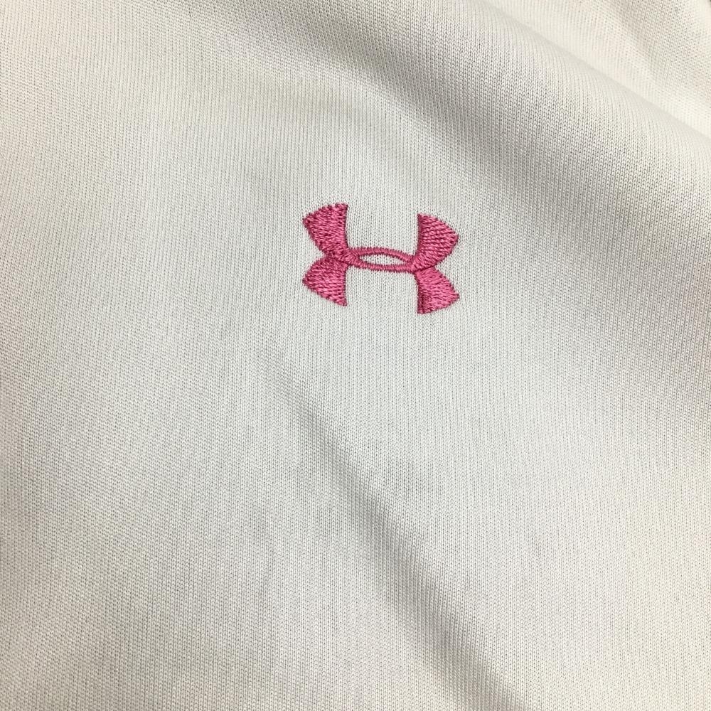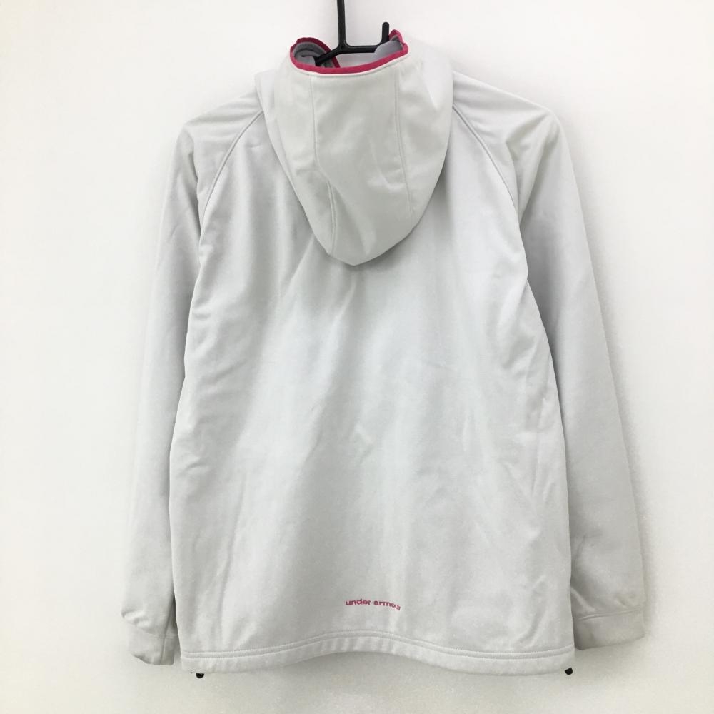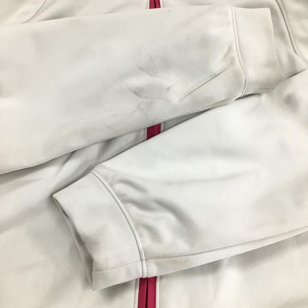 アンダーアーマー パーカーブルゾン 白×ピンク 裏地付き ドローコード 汚れ多 レディース LG ゴルフウェア UNDER ARMOUR