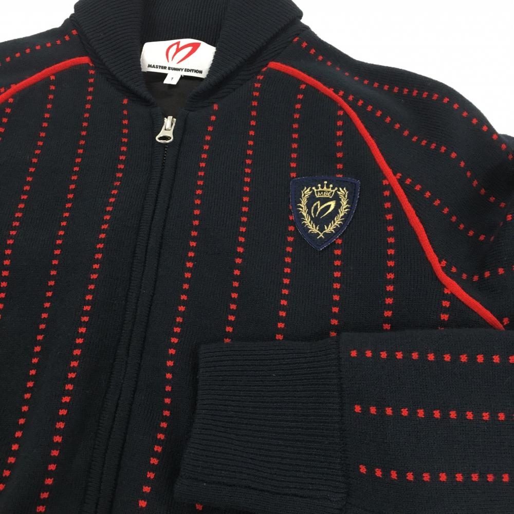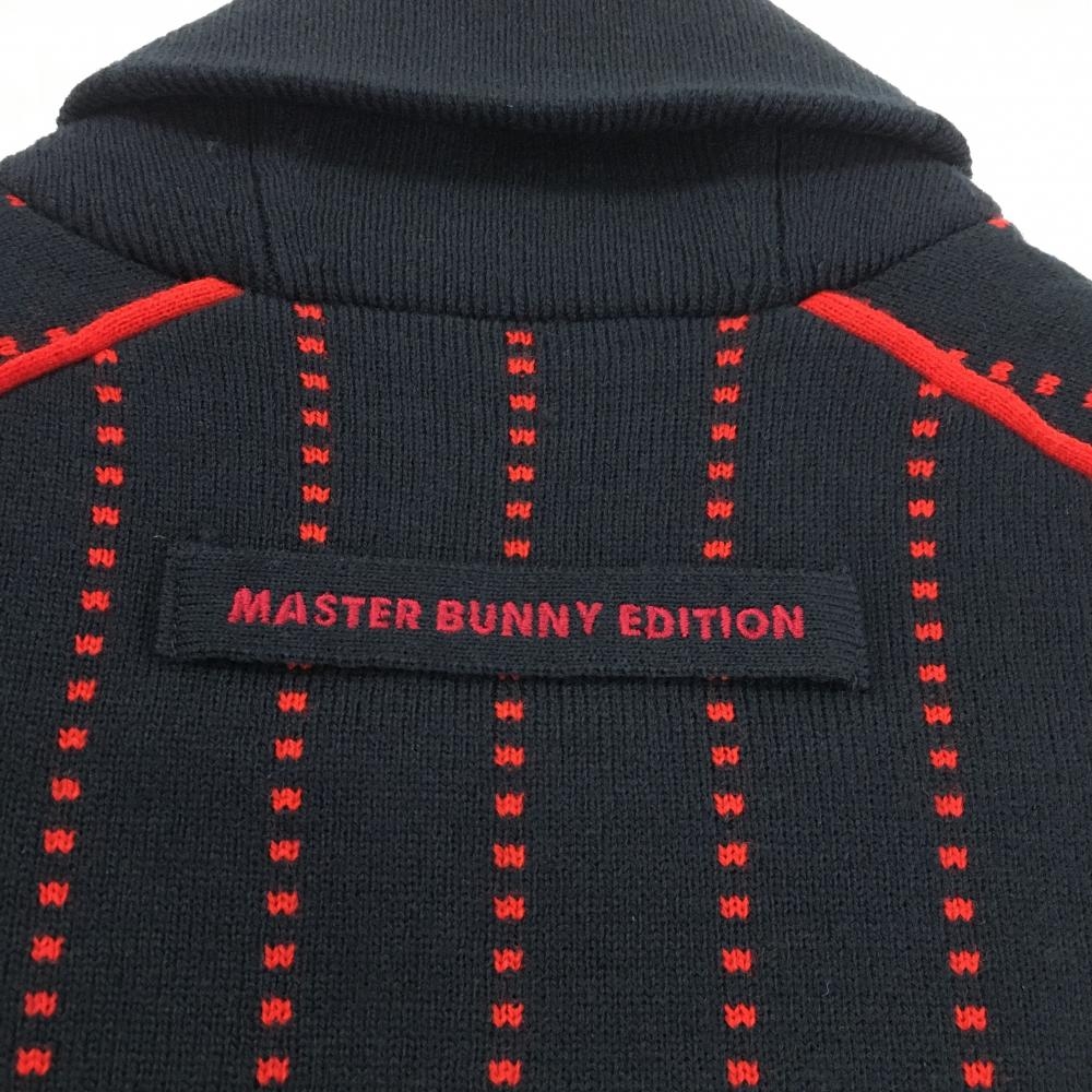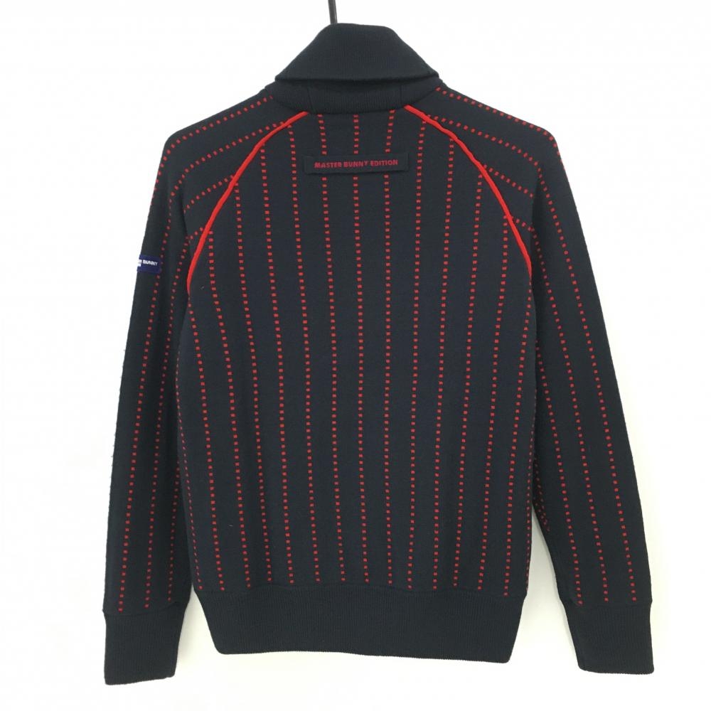 【超美品】マスターバニー ニットジャケット ネイビー×レッド ドットストライプ レディース 1(M) ゴルフウェア MASTER BUNNY EDITION