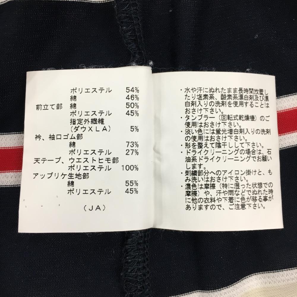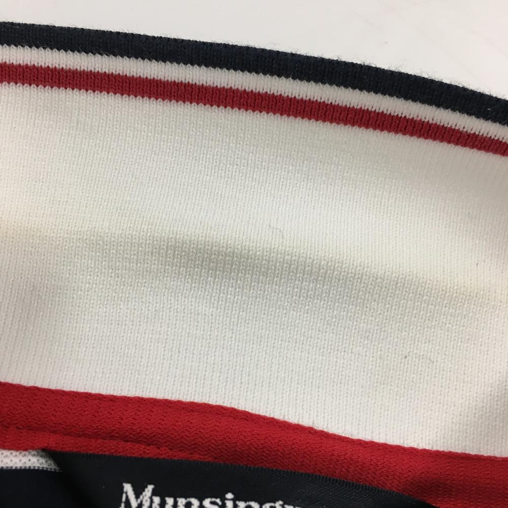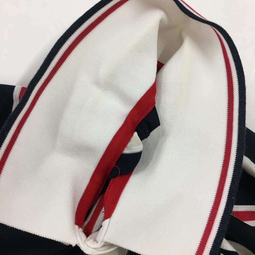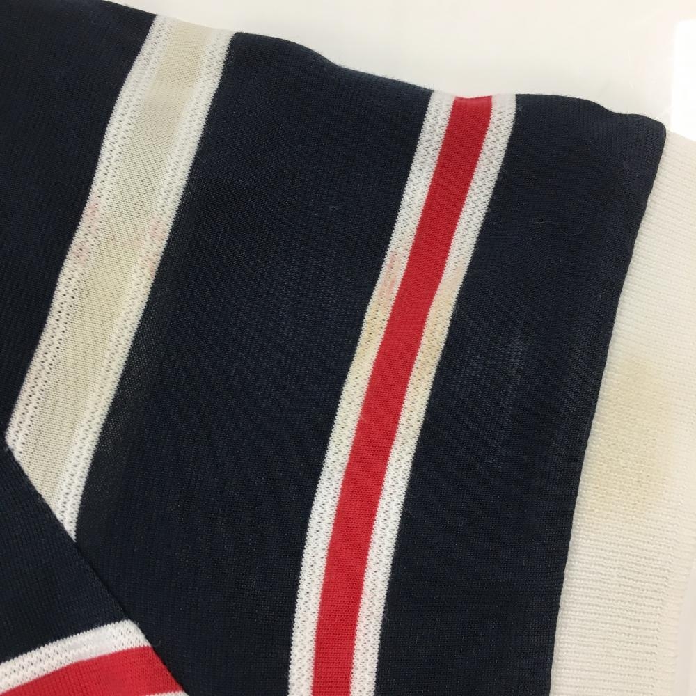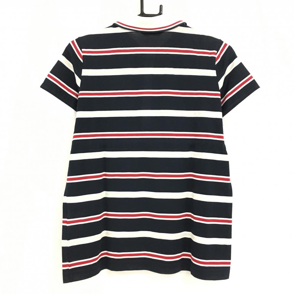 マンシングウェア 半袖ポロシャツ ネイビー×白×レッド ボーダー リボン付き レディース M ゴルフウェア Munsingwear