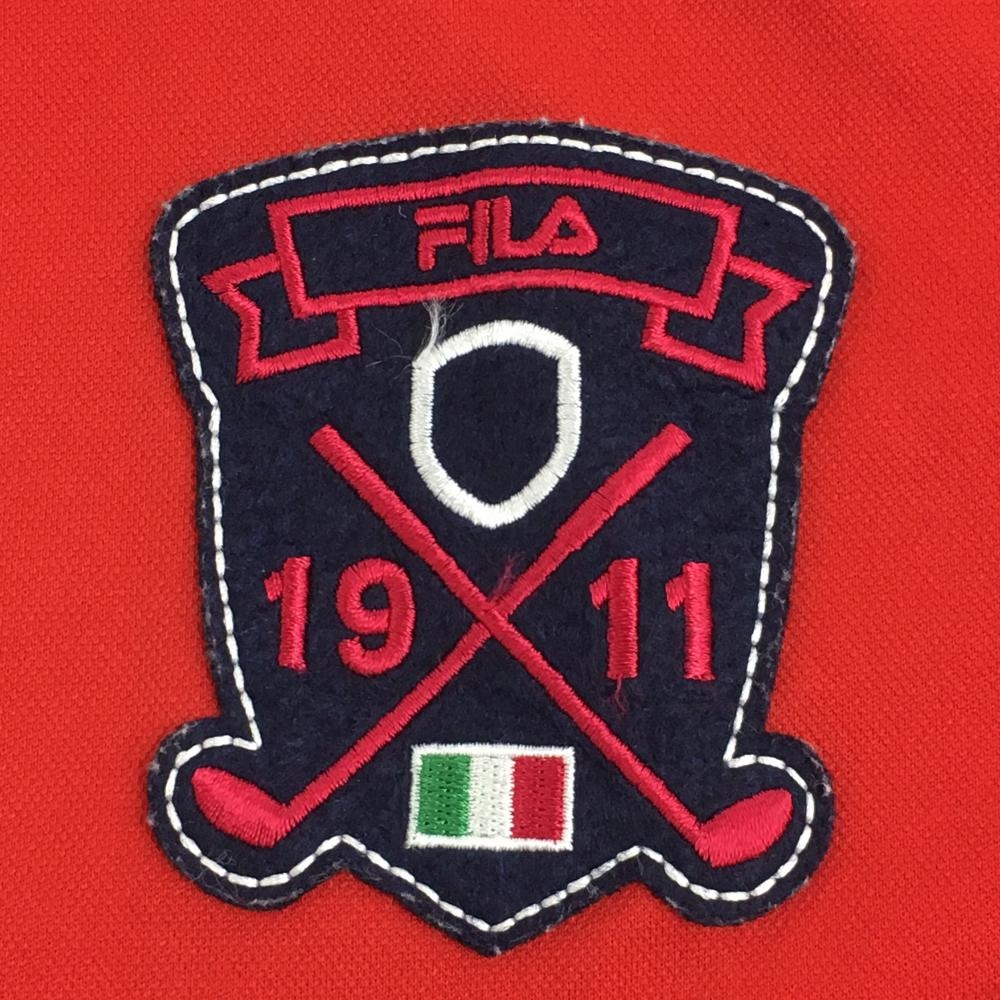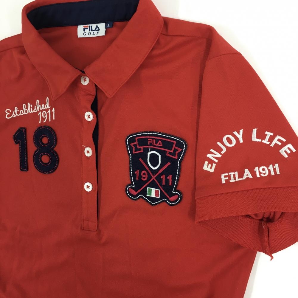 【美品】フィラゴルフ 半袖ポロシャツ レッド ワッペン 刺しゅう レディース L ゴルフウェア FILA GOLF