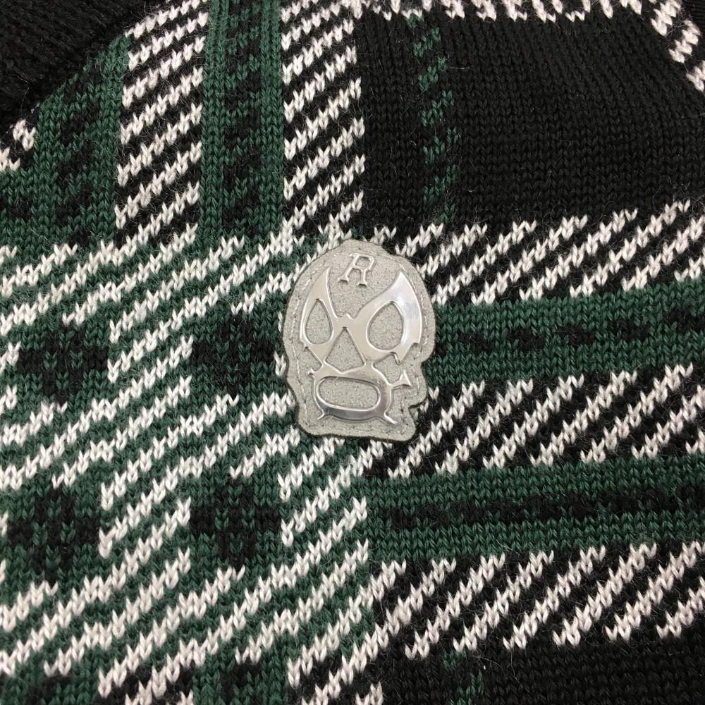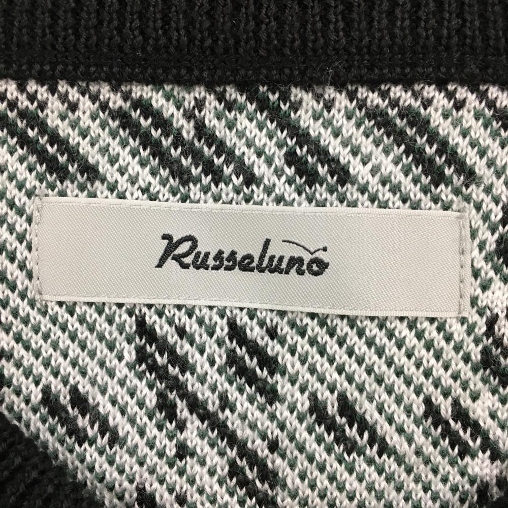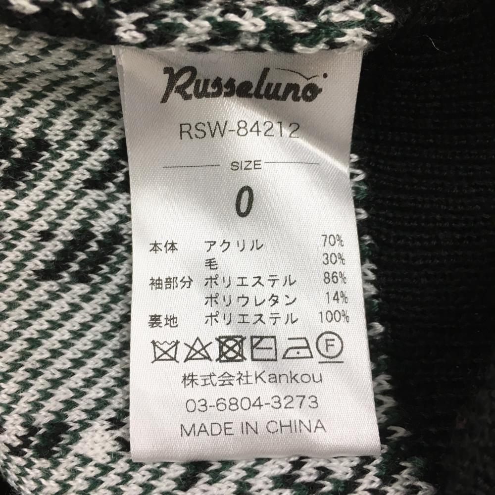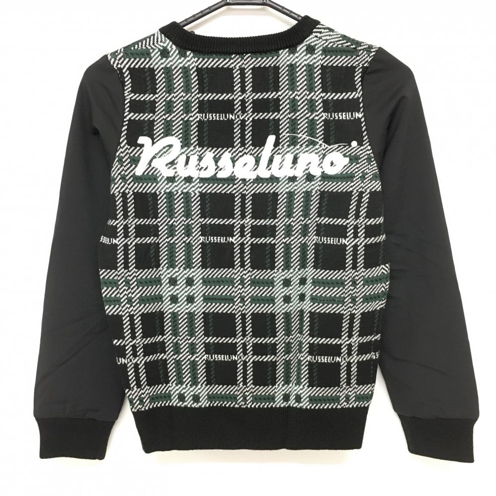 【未使用品】ラッセルノ セーター 黒×白×ダークグリーン チェック 袖異素材 レディース 0 ゴルフウェア RUSSELUNO