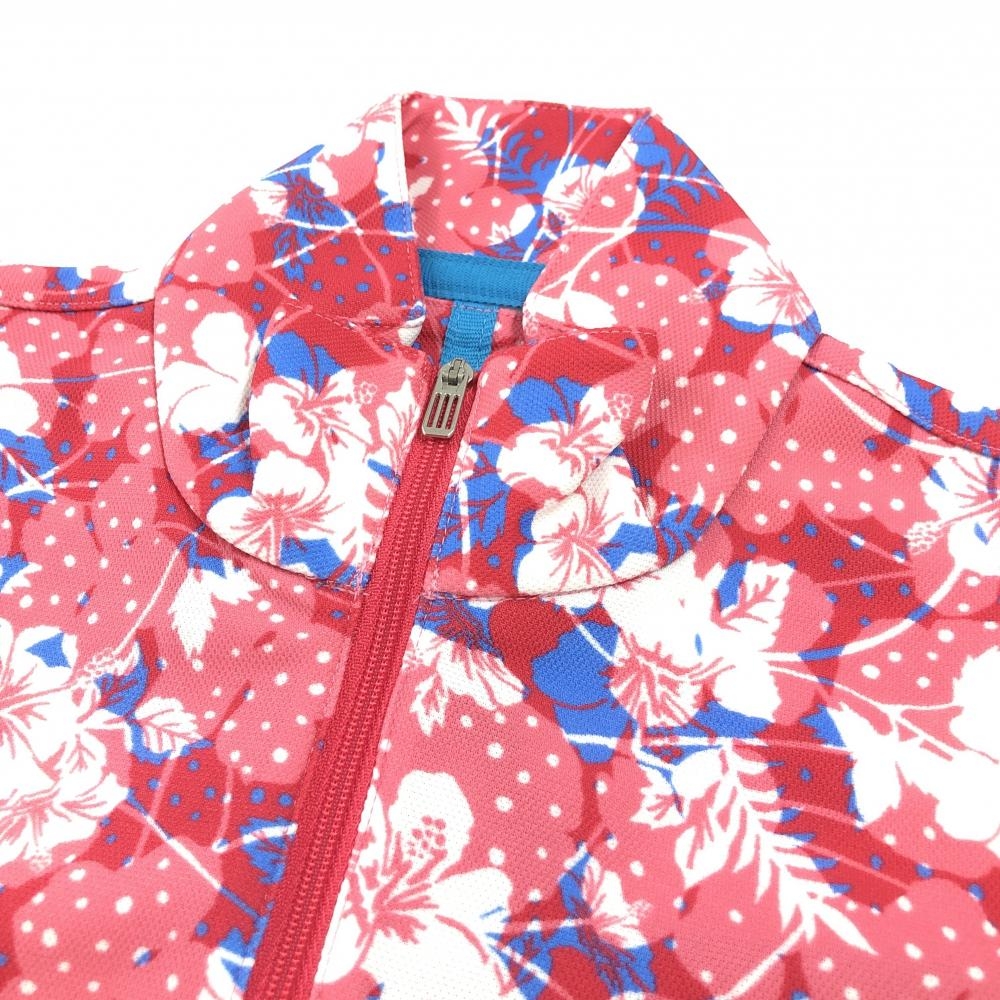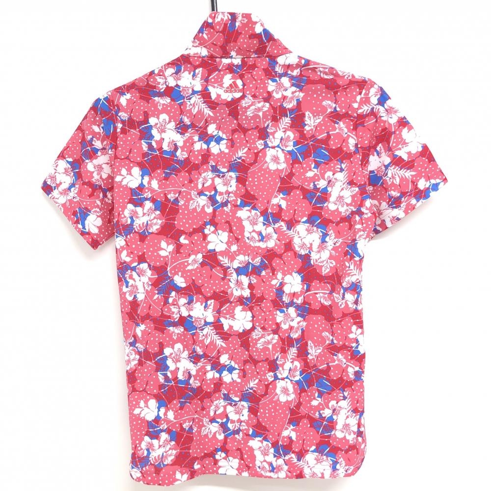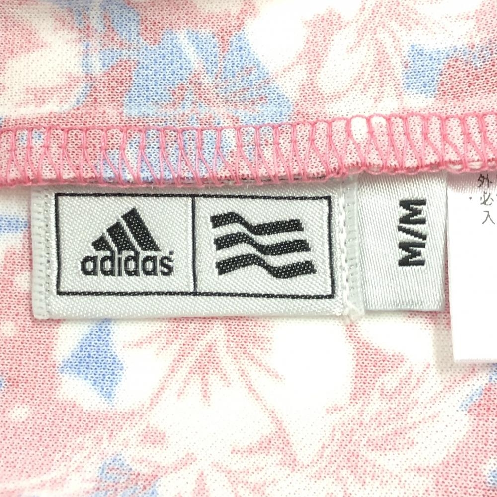 【超美品】アディダス 半袖ハイネックシャツ ピンク×白 花柄 ドット柄 ハーフジップ レディース M ゴルフウェア adidas