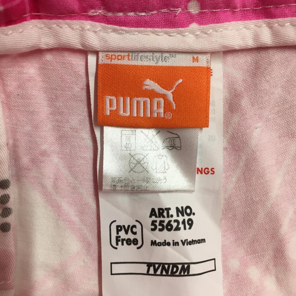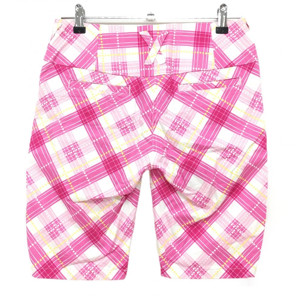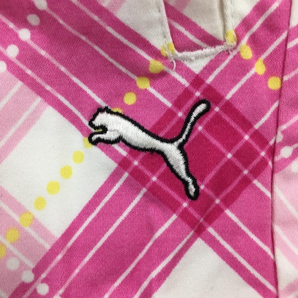 プーマ ハーフパンツ ピンク×白 チェック ストレッチ ロゴ刺しゅう レディース M ゴルフウェア PUMA