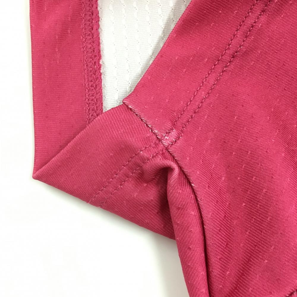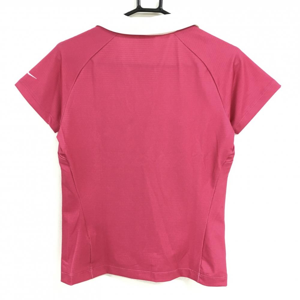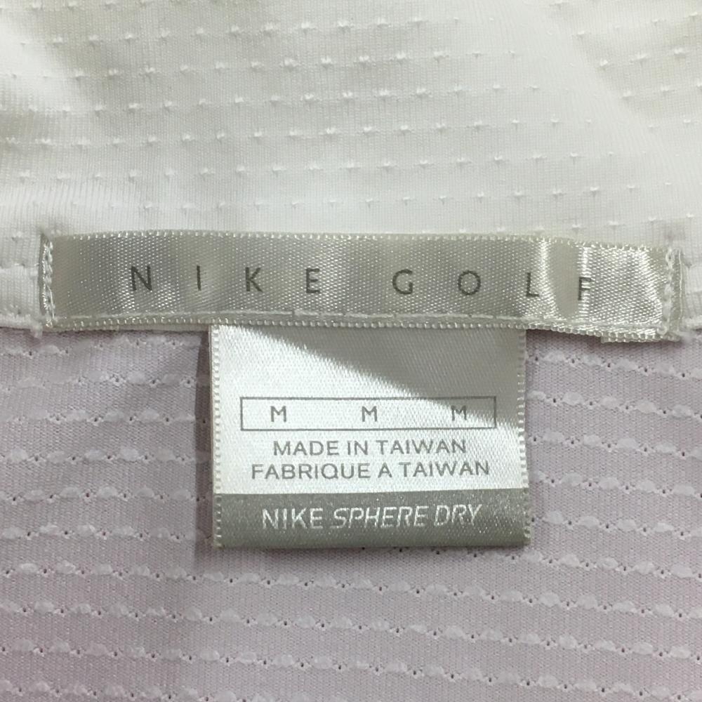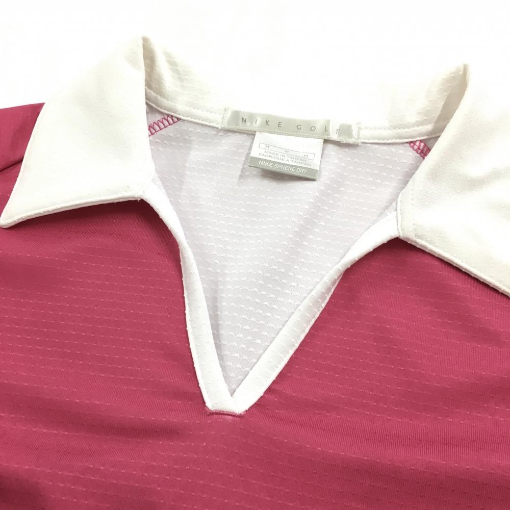 【美品】ナイキゴルフ 半袖スキッパーシャツ ピンク×白 地模様 DRY ドライ ストレッチ レディース M ゴルフウェア NIKE
