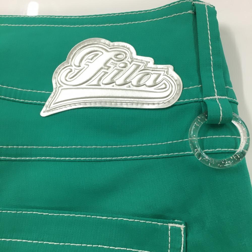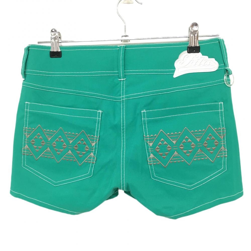 【超美品】フィラゴルフ ショートパンツ グリーン×ベージュ 一部エキゾチック柄 刺しゅう レディース M ゴルフウェア FILA GOLF