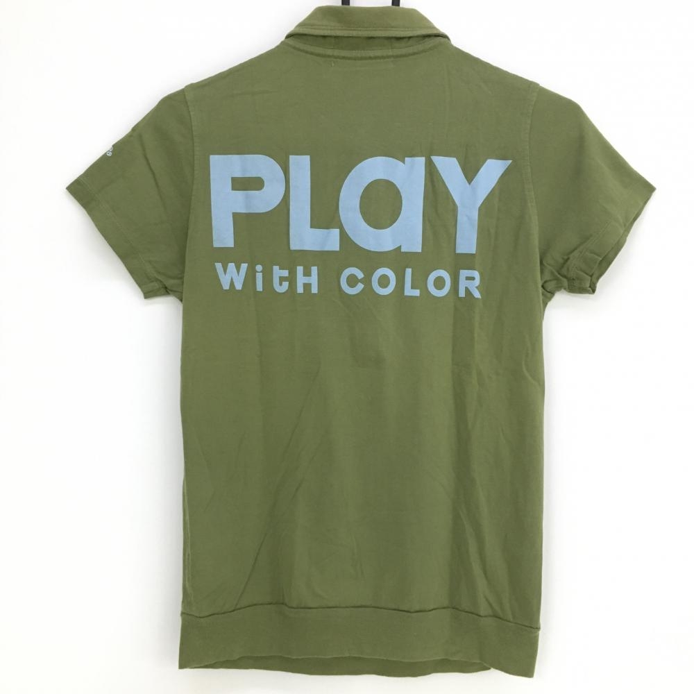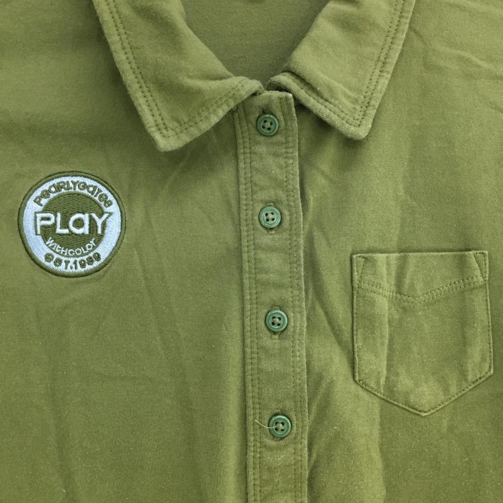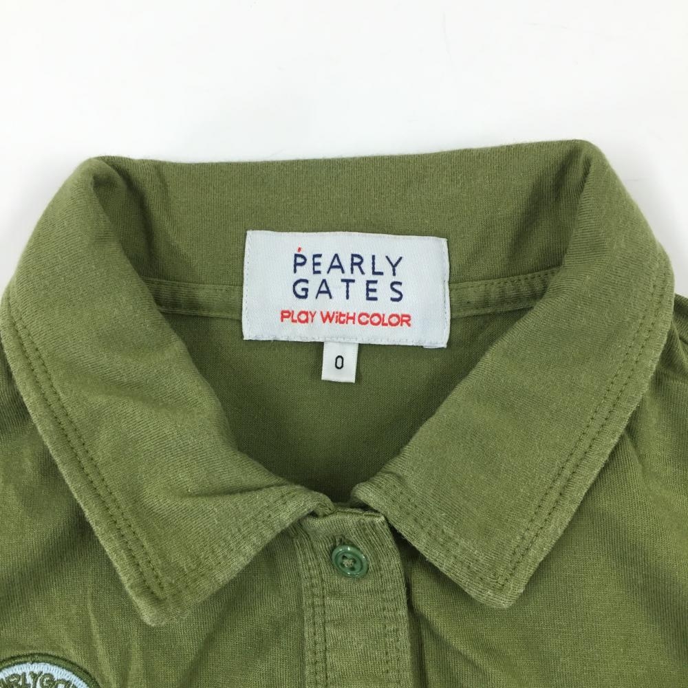 パーリーゲイツ 半袖ポロシャツ カーキ×ライトブルー コットン100% レディース 0(S) ゴルフウェア PEARLY GATES