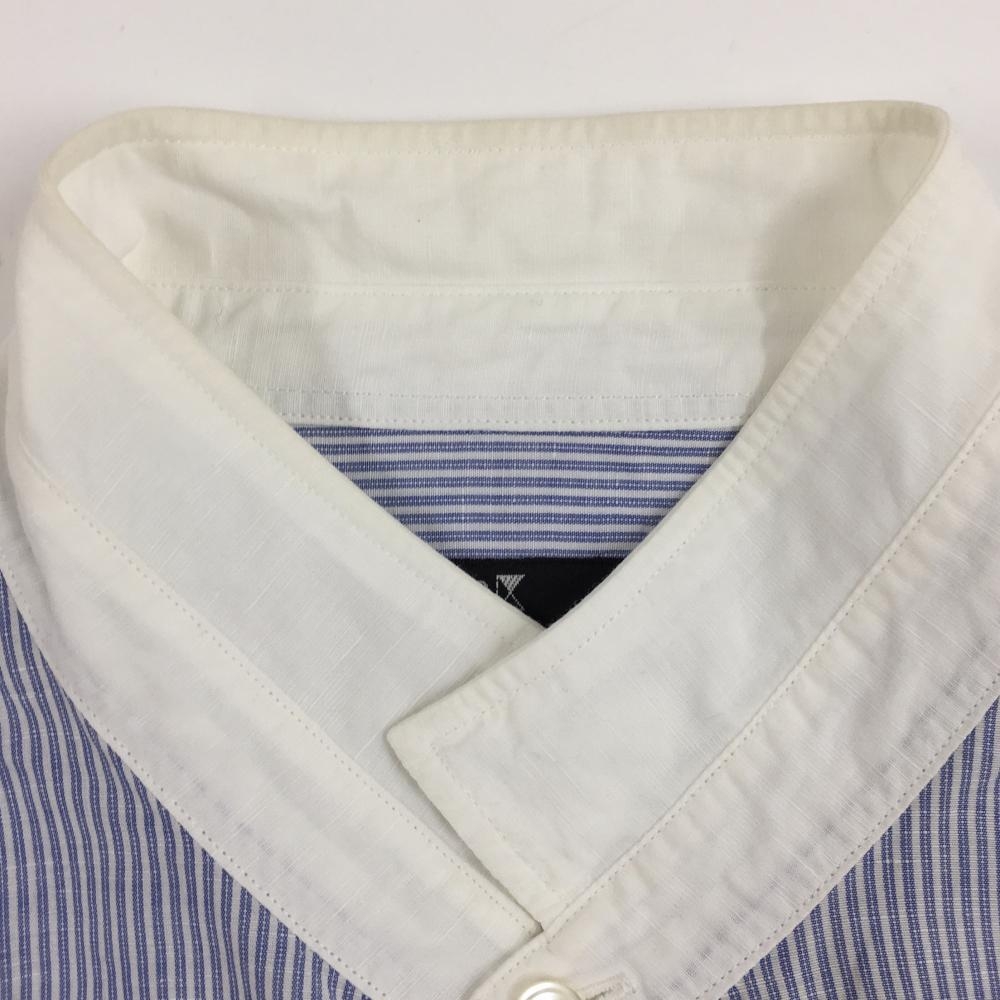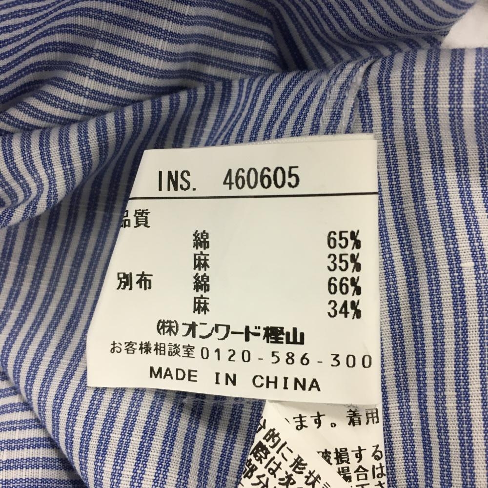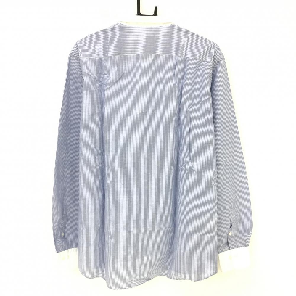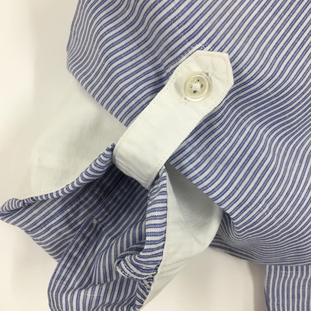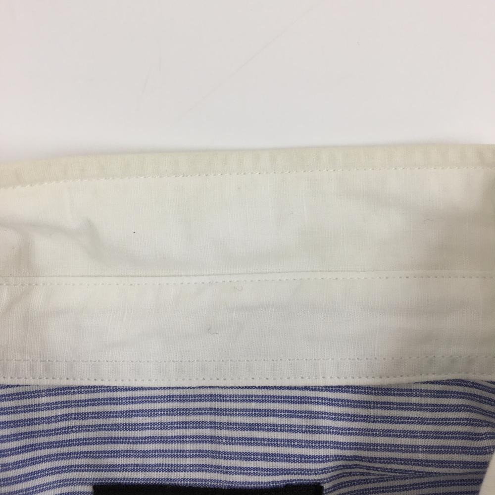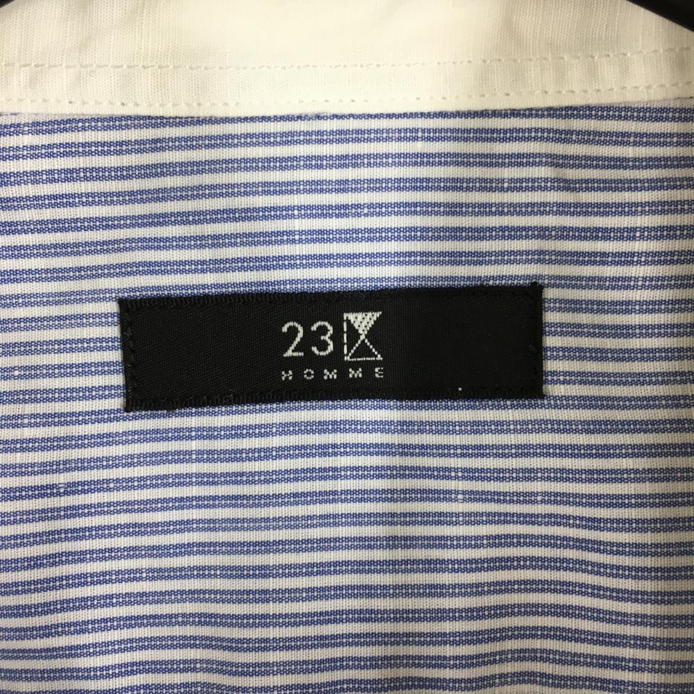 23区 長袖シャツ 白×ブルー 細ストライプ コットン混 麻混 メンズ 50 ゴルフウェア 23区